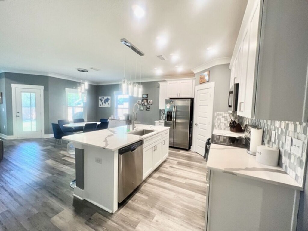 Available April 8! Sorry, No Pets This beautifully maintained 4-bedroom, 2-bath home offers 1,866 square feet of light-filled, open-concept living space in Niceville. From the inviting covered entry to the bright, airy interior, this home blends comfort and modern style. The spacious living area flows seamlessly into the kitchen, which features quartz countertops, crisp white cabinetry, a tiled backsplash, and a large center island with bar seating. Durable LVP flooring runs throughout, complemented by craftsman-style doors and a neutral color palette. The primary suite provides a peaceful retreat with a generous walk-in closet and an en-suite bath complete with double vanities, quartz countertops, and a beautifully tiled walk-in shower. Additional bedrooms are well-sized with great natural light, and the secondary bath offers a shower/tub combination. Enjoy the fully fenced backyard, separate laundry room, and the added benefit of solar panels for improved energy efficiency. **Carpet cleaning & Admin Fee charged (if applicable)** Tenant to verify all data. Please contact Sound Choice Real Estate to schedule a showing- . ***Approval is based on several factors as follows*** - Rental History and Verification - Employment History and Verification - Credit History - Criminal Background & Terrorist Database Check - Pet Verification - If Pet friendly home