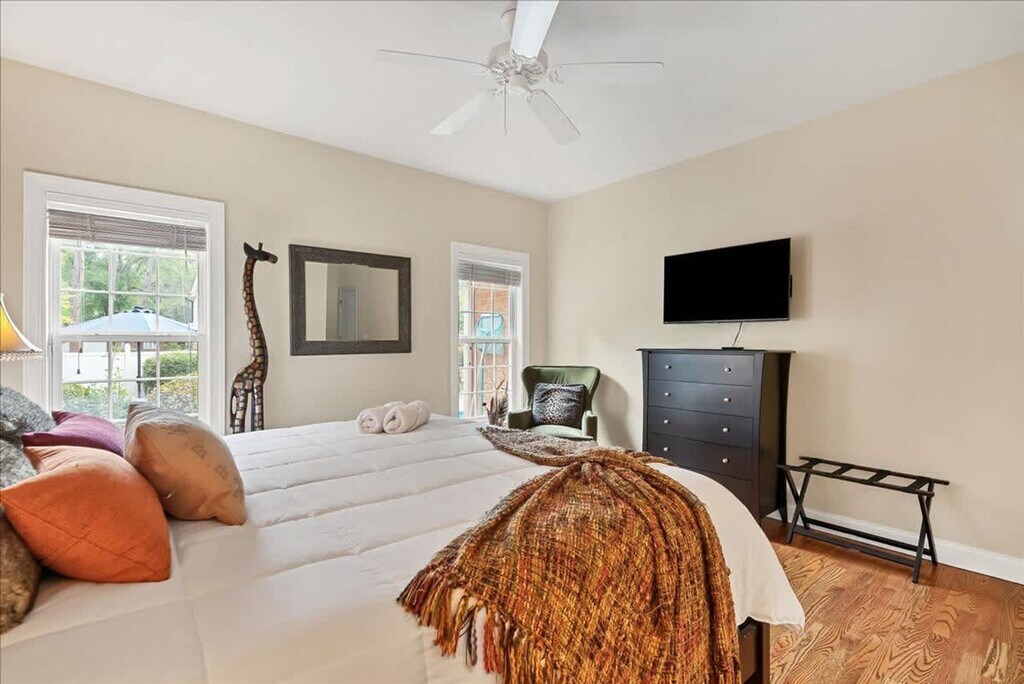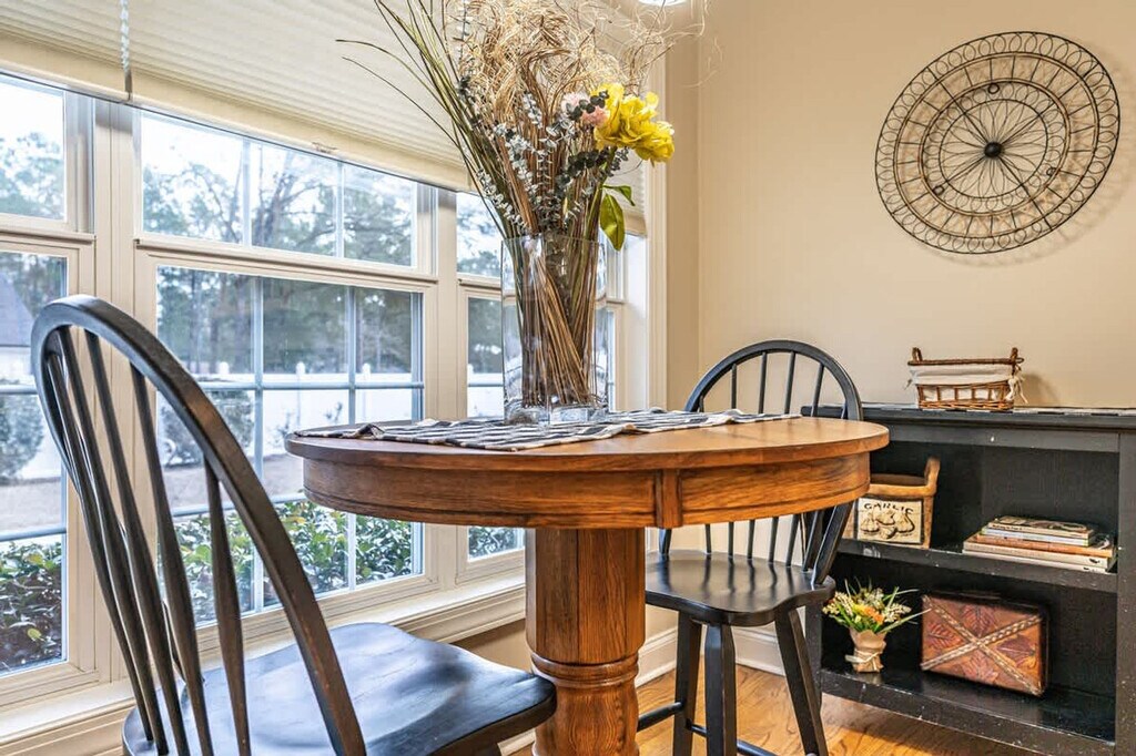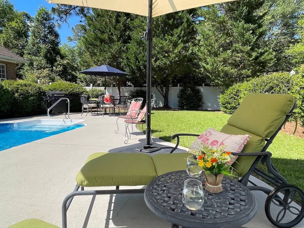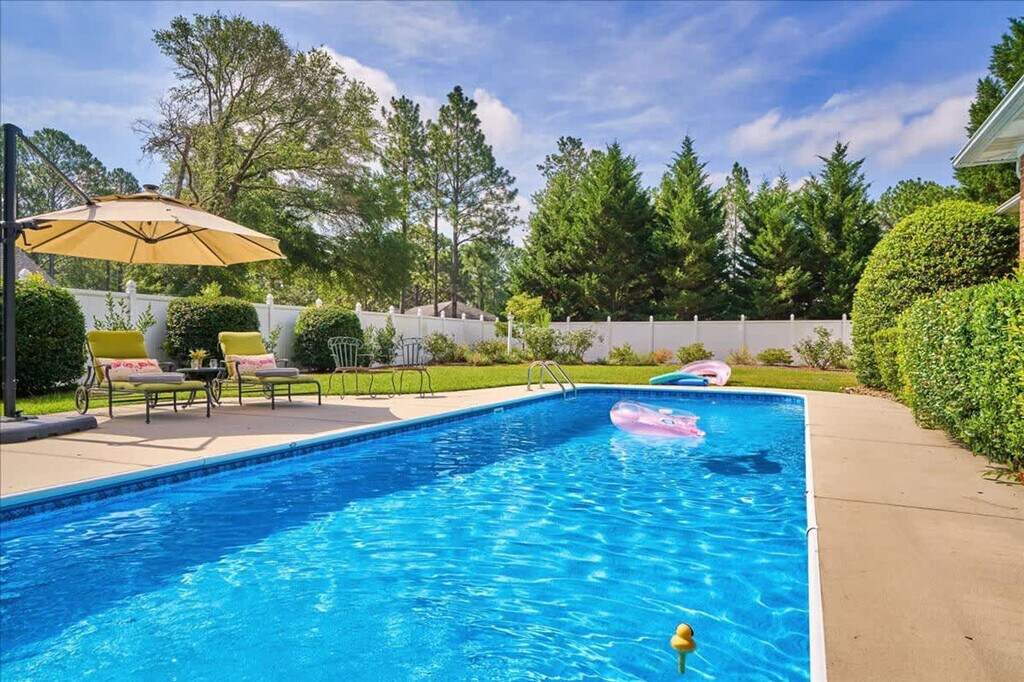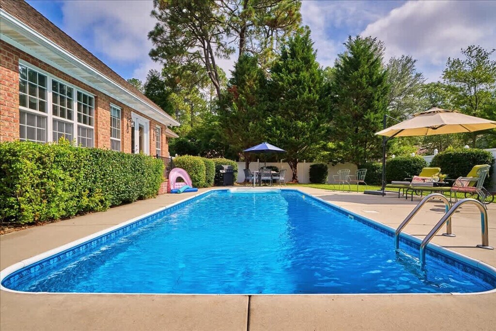 Feel at home in this beautiful and spacious home, offering a cozy setting to unwind after a day of golf or shopping downtown. Located just 1.2 miles from Pinehurst Resort and Village, this home features stylish new furnishings, spacious bedrooms, a comfortable living room with a gas fireplace and Smart TV, and a luxury Viking range/oven in the kitchen. Enjoy the private pool for relaxation and a garage with a ping pong table for fun. This home provides a cozy setting to unwind, just 1.2 miles from Pinehurst Resort and Village. During summer months, enjoy a beverage by the private pool or take a refreshing dip. The stylish new furnishings and spacious bedrooms offer plenty of space for golf enthusiasts and families. The living room is equipped with a gas fireplace, Smart TV, and bookshelves filled with books, games, and DVDs. The kitchen features a luxury Viking range/oven along with all the basic cooking utensils and more, including a Keurig and coffee, hosting platters, and side dishes. For additional fun, the garage contains a ping pong table. The home includes high-speed Wi-Fi, heating, a washer/dryer, and free private parking. Early check-in and late check-out are subject to availability with a $25/hour fee. The pool is closed annually from December 1 to April 1. Pinehurst, North Carolina, is a picturesque village known for its rolling hills, lush green landscapes, and numerous golf courses. Visitors can enjoy a round of golf on one of the nine golf courses in the area, including the world-renowned Pinehurst No. 2 course. The village also offers a variety of outdoor activities, such as hiking, biking, and horseback riding. The Pinehurst Arboretum is a must-see for nature lovers, featuring over 400 acres of gardens, trails, and natural areas. Additionally, the village offers a variety of dining, shopping, and lodging options, making it a perfect destination for both quiet retreats and action-packed vacations. Access is easy with a unique access code provided for the duration of your stay, eliminating the need for keys. Smoking is not allowed, and parking in the garage is prohibited. Early check-in and late check-out are available for a $25/hour fee, subject to availability. The property is privately owned, and the owners are not responsible for any accidents, injuries, or illnesses that occur while on the premises. No large events or parties are allowed, and only guests designated in the reservation may stay overnight. Housekeeping is not provided daily, and while linens are included, daily maid service is not part of the rental rate.