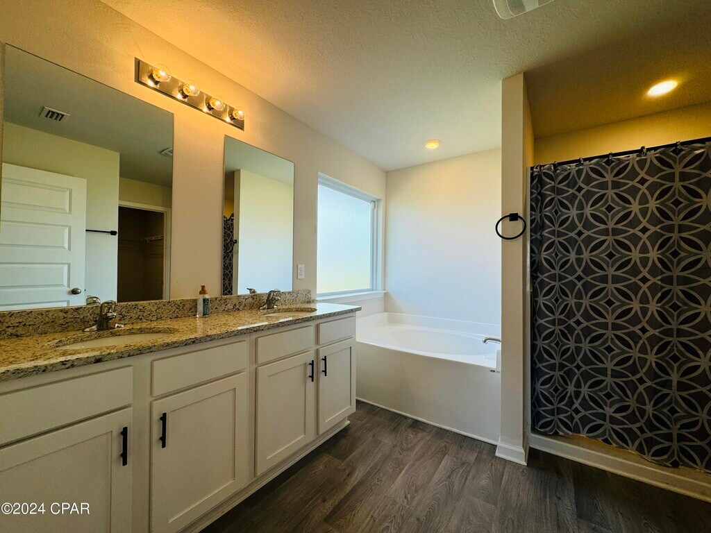 Welcome to your new sanctuary! This charming single-story, 4-bedroom, 2-bath home is designed for comfortable and modern living. Step into the expansive open living area that seamlessly flows into a state-of-the-art kitchen featuring a stylish center island, perfect for both culinary adventures and casual dining. The kitchen comes fully equipped with premium appliances, including a refrigerator, stove/oven, microwave, and dishwasher, ensuring meal preparation is effortless.The common areas showcase elegant vinyl flooring, complemented by pristine white cabinetry and durable countertops. Ample closet space throughout the home offers convenient storage solutions. The primary bedroom is a tranquil retreat, complete with a luxurious bath that boasts a dual sink vanity, a large soak tub, and a separate shower, creating a spa-like experience.Enhancing the appeal of this home are the advanced Smart Home features, including a Skybell doorbell, automated front porch lighting, and a Qolsys touch panel. These features can be seamlessly integrated to control your lighting, thermostat, front door, and much more, bringing convenience and security to your amenities elevate your lifestyle with access to a sparkling pool and a well-equipped outdoor kitchen, perfect for entertaining and relaxing with friends and family.Don't miss the opportunity to make this exquisite home yours. Schedule an appointment today and experience the perfect blend of comfort and modernity. Plus, we are proud to offer a military discount as a token of our appreciation for your service. Make this home yours today!