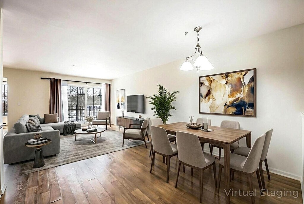 This Balmoral Park condominium offers comfort,style,and unbeatable convenience. A bright main-level layout with an open floor plan and wood-style floors throughout. The Living Room opens to a private balcony with peaceful pond views and the kitchen features granite countertops and stainless steel appliances,ample cabinetry,and pantry storage. The primary bedroom offers a private bath with dual-sink vanity,large walk-in shower,and walk-in closet with wood shelves and organizers. A second bedroom and full bath provide flexible living space,while first-floor laundry in bathroom closet adds everyday ease and function. The partially finished lower level with egress is ideal for bonus living space and includes additional storage and furnace room. Enjoy an attached one-car garage,well-maintained common areas,and a location on the bus line close to Briarwood,Whole Foods,Panera,and major highways. Move-in ready and a must-see.