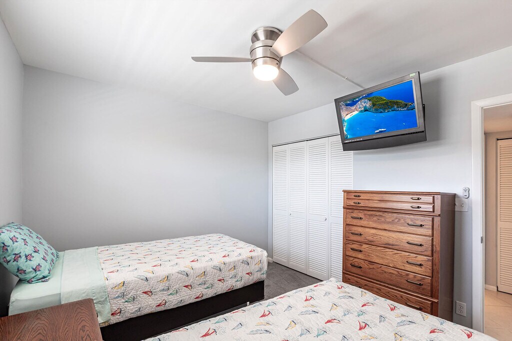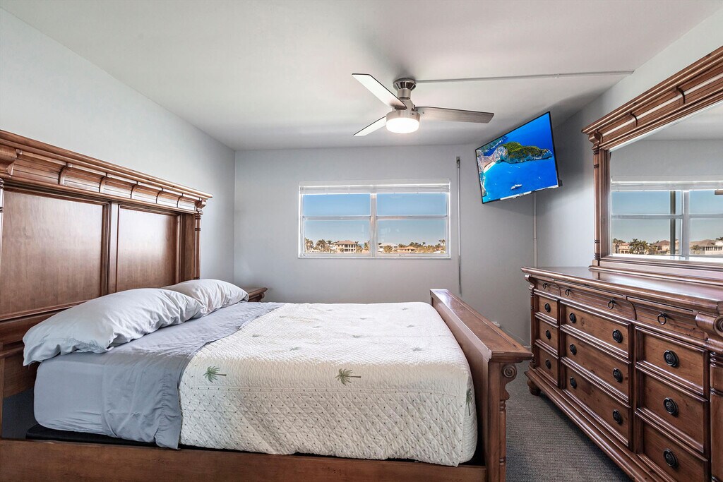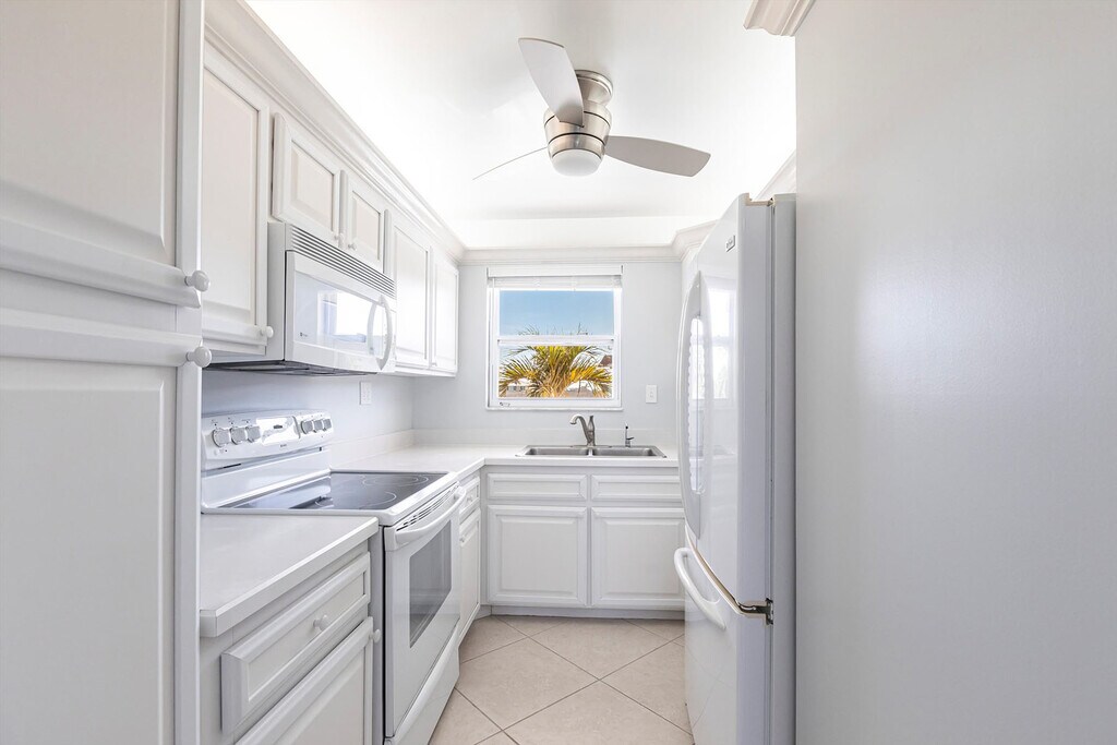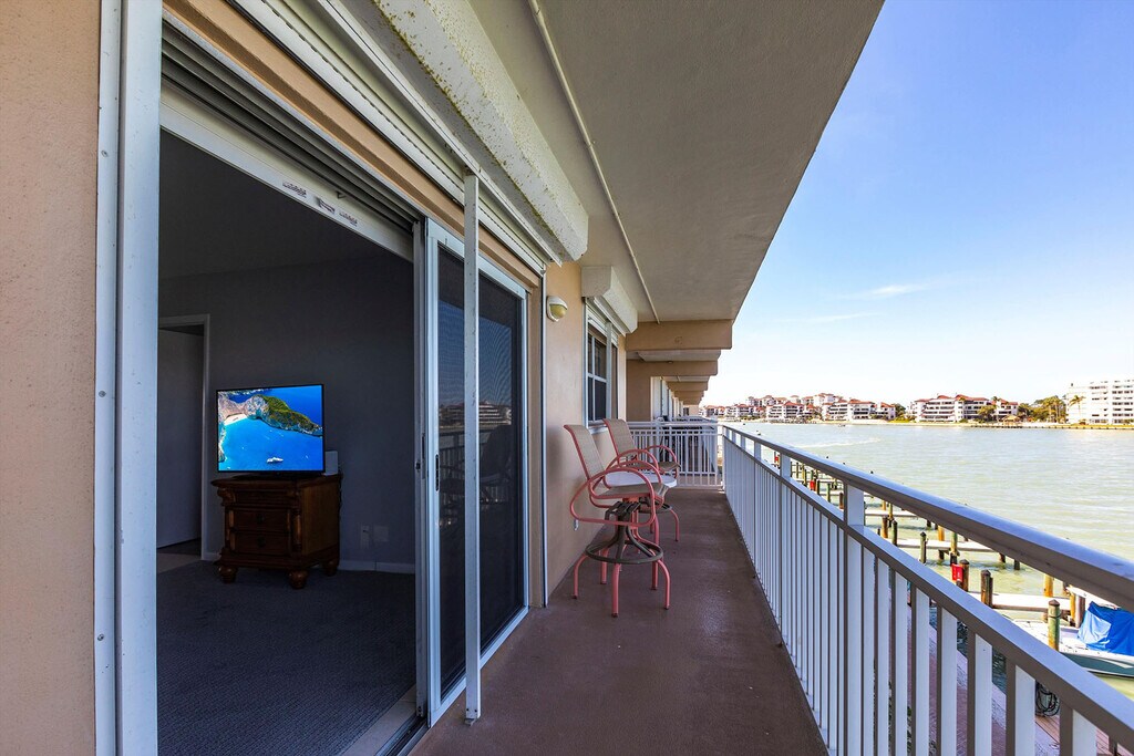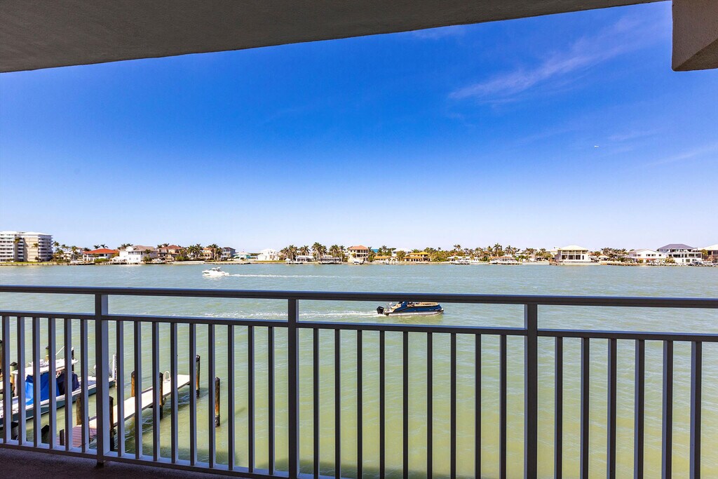 Available Immediately UNFURNISHED ANNUAL Your opportunity to live year-round on Marco Island with wide water views, watching wildlife and boats pass by in this end-unit third-floor condo in highly sought-after Olde Marco location within walking distance to some of the island's favorite restaurants and attractions. Coastal, two bedroom two full bath condo with all white kitchen and freshly painted dining and living area open to sliders accessing your private wraparound balcony. Primary suite boasts relaxing water views and an en-suite bathroom with tub and shower. Private guest suite overlooking the pool has full bath with walk-in shower Laundry in unit and additional machines in community laundry room. Same floor storage unit included. Existing furniture can stay or be removed, including three TVs. Most utilities included - tenant pays electric only. Ville de Marco features a heated pool, sun deck, and fishing pier!
