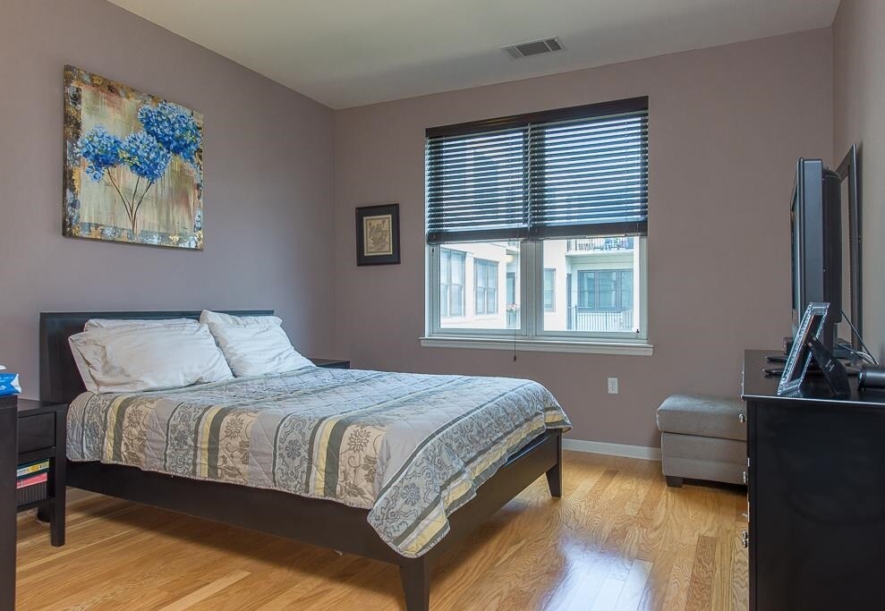 Welcome home to this 2 bed 2 bath apartment on a higher floor in a quiet, steel and concrete elevator building with a gym, common courtyard and community room. Features include a chef's kitchen with granite and S/S appliances, private balcony overlooking the courtyard, high ceilings, large bedrooms with a walk-in-closet in each room, and a double vanity in the master bath. W/D in unit and hardwood floors throughout. Garage parking included! Available late May. Small-medium dog may be accepted on a case by case basis. Entrance to the unit is most easily accessed through the 1201 Adams entrance.