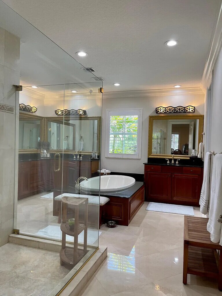 12-Month Lease $18,000 per month / Lease Dates may be flexible. Evergreen - a sought-after, 24-hour manned gated community with private roving security. Evergreen boasts a 20,000 sq ft newly renovated clubhouse, a resort-style pool, and a kiddie pool featuring a water park and playground. Sports courts include pickleball, volleyball, and basketball, along with a beautiful private walking lake and dock. Furthermore, the Evergreen Club enjoys a state-of-the-art fitness center and yoga room. Unique to Evergreen is a private community Tiki restaurant located behind the clubhouse, in the pool area, complete with a chef and bar, plus live music every weekend. The community is conveniently close to I-95, the Florida Turnpike, and just minutes from Jupiter and Juno Beach (one of the few "dog-friendly beaches"), the elegant Gardens Mall, as well as fantastic restaurants, shopping, an airport, world-class golf, and an A-rated school district. HOME: FULLY FURNISHED - An executive and luxurious home featuring high-end attributes like Venetian plaster walls, stone columns, crown molding, and a 20-foot stone gas fireplace. Polished natural stone floors beautifully enhance the wood floors. This home's layout includes a family room, kitchen, eat-in kitchen area, formal living and dining rooms, laundry, guest bath, and wine room on the first floor. The upper floor features a third living area, family room, TV area, and a luxurious office adorned with cherry cabinetry, baseboards, Swarovski glass, and an imported cherry door. The master suite offers a spacious bedroom with a sitting area, plantation shutters, a mini bar/coffee area or makeup station, his and hers sinks, a garden tub, a natural stone tile shower, and a large built-in closet behind the double entry door. All bedrooms are located on the second floor, with the second and third bedrooms each having private bathrooms. The laundry room is conveniently situated off the kitchen, adjacent to the designer guest bath. A charming wine room is also connected to the pantry. Three bedrooms on the same floor, a large formal office, and a separate exercise room, all on the 2nd floor. The outdoor living area is remarkable. It features a 13-foot cooking space equipped with granite countertops, a sink, a gas grill, and a cooktop. A movable canopy shelters the outdoor seating area and includes an outdoor TV for watching games while the family enjoys the pool. There is also a covered seating area by the pool. This custom 30,000-gallon pool features fountains, a hot tub, natural stone decking, and a screen to minimize pest intrusion. There is also an oversized two-car garage.
