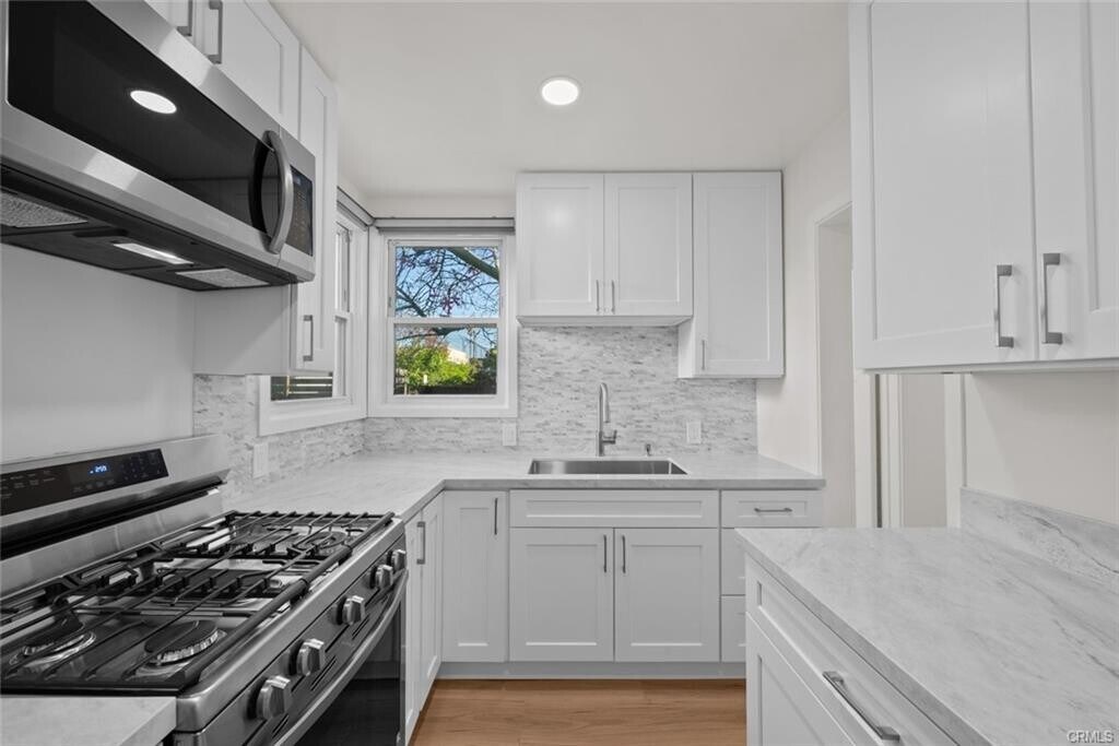 - Newly remodeled 2-bedroom, 1-bathroom condo located in the heart of Burbank! This first-floor unit offers approximately 800 sq. ft. of modern living space featuring recessed lighting, fresh white paint, and beautiful wood-style flooring throughout. The updated kitchen showcases white cabinetry, stainless steel appliances, and sleek countertops. The bathroom features a clean, spa-inspired design with a white tile shower-over-tub. Enjoy added comfort with ceiling fans, window coverings, and a private backyard patio with paved space and lush greenery, perfect for relaxing or entertaining. Conveniently located within walking distance to Burbank High School, shopping, and dining. Includes one carport parking space. Listing provided by: Patricia Sarkisyan of JohnHart Real Estate LA State License 1966170 Listing posted by Fernando Valen [SYNDID 4143590 11142025]