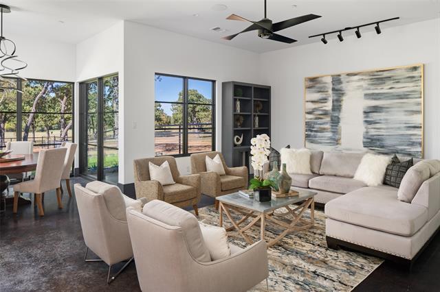 Contemporary 8,079sqft, 4BR, 4.1 BA on 1 acre for lease in Bartonville. Completed in 2021, the 2-story sits on a magnificent 72-acre equestrian estate filled w.mature trees, ponds and lush pastures. Walls of steel-framed windows provide breathtaking views fm every room. Entry door opens to a soaring hallway flanked by glass walls, connecting family areas to owner's retreat. A floating staricase leads to 2 en suite BR's and a theater room up. Chef's kitchen 60-inch, 6-burner Wolf range with grill, griddle and convection oven. A 12x10 walk in pantry can double as a butler's pantry with granite counters, custom drawers, farm sink and built in microwave. A custom 488-bottle glass wine wall separates living & dining areas. Owners retreat has walls of glass and en-suite spa bath. Office is also in this wing. Resort-style pool w.baja shelf, spa and water features accessible directly from owner's suite or outdoor living center.