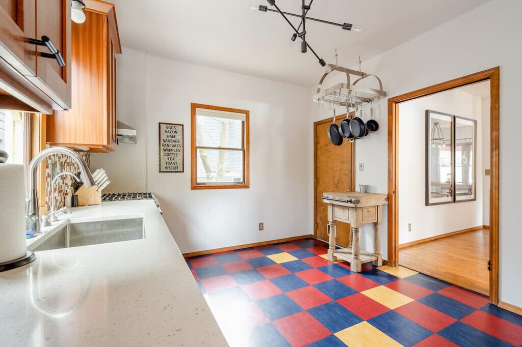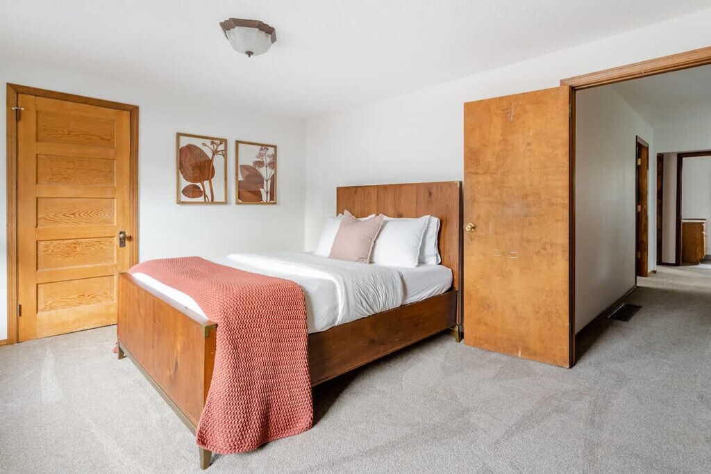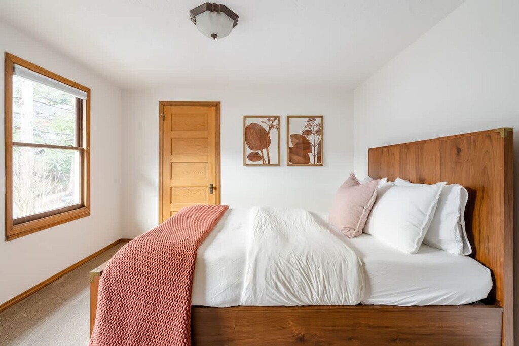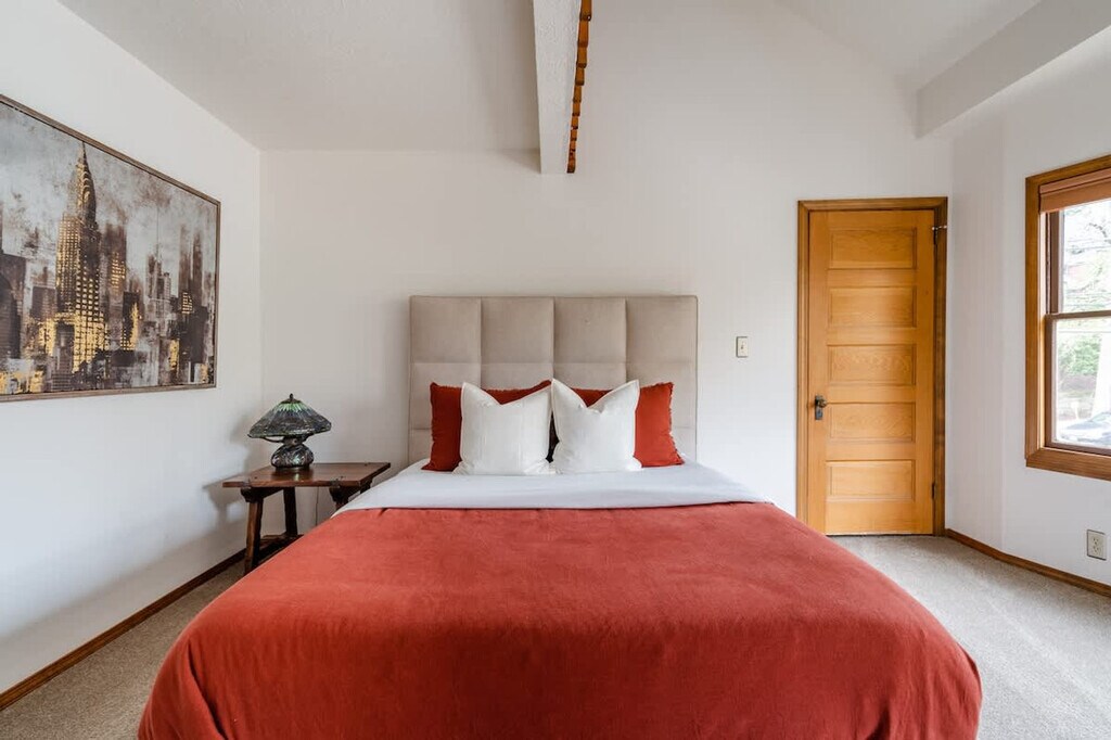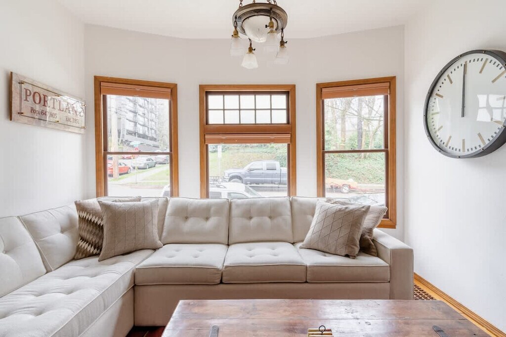 Bright, modern, and family-friendly, this upper-level home features three queen bedrooms, a full kitchen, washer and dryer, fast Wi-Fi, smart TV, and central air. Located near PSU and Providence Park in walkable Goose Hollow, you’re just minutes from downtown. Includes a private front deck and off-street parking for two small cars. The unit is accessed via an exterior staircase. Perfect for families or groups, this light-filled upper-level unit offers a comfortable home base in one of Portland’s most central neighborhoods. The main floor includes a living and dining area with a smart TV, a fully equipped kitchen with a dishwasher and Keurig, a half bathroom for added convenience, and access to a private front deck. Upstairs, there are three bedrooms, each with a queen bed, one full bathroom with a tub and shower combo, and a washer and dryer. Central heating and A/C are provided throughout, and reliable high-speed Wi-Fi makes it easy to work remotely or stream your favorite shows. Off-street parking is available for two small cars. Situated in the heart of one of Portland's most dynamic and desirable neighborhoods, this prime location offers the perfect blend of urban living and natural beauty. The neighborhood is renowned for its vibrant dining scene, featuring an array of top-rated restaurants, cozy cafes, and trendy bars. Shopping enthusiasts will love the proximity to a variety of boutique stores, vintage shops, and specialty markets. For those who enjoy the outdoors, the neighborhood is surrounded by lush green spaces and parks. Culture and entertainment are at your doorstep, with a variety of theaters, art galleries, and live music venues nearby. This listing is for the main and upper floors only. No parties or events are allowed, and this is a non-smoking property. Quiet hours are strictly enforced between 22:00 and 8:00. Reliable high-speed Wi-Fi makes it easy to work remotely or stream your favorite shows. [SI]