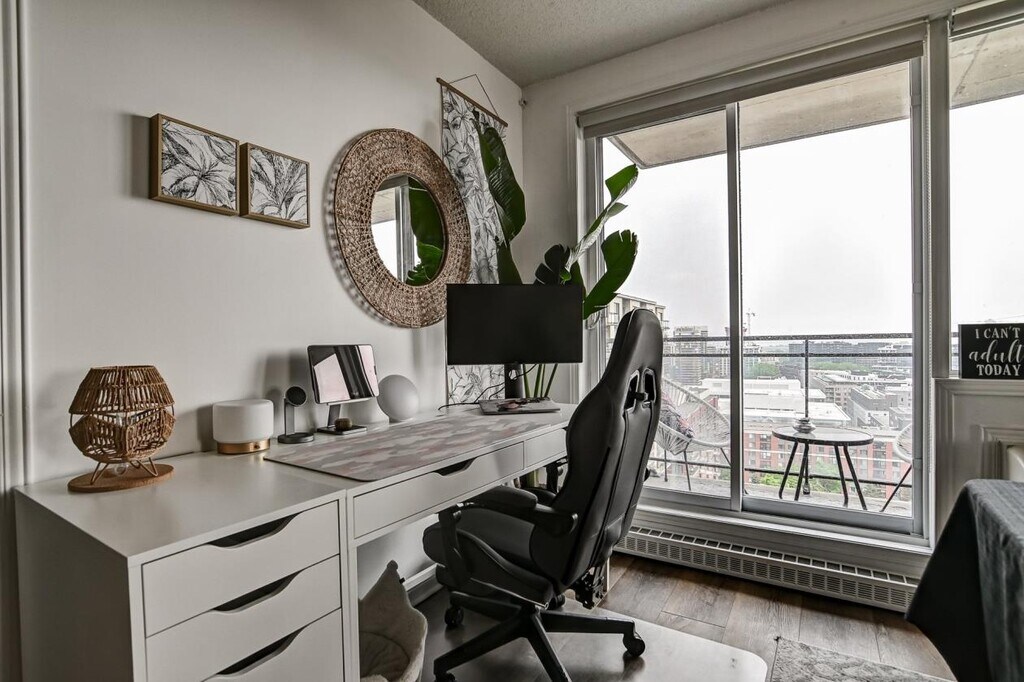 4 ½ Corner Unit – Les Jardins Windsor II (Ville-Marie) English follows. ----------- Situé entre le centre-ville, Griffintown et le Vieux-Port, un condo de coin lumineux et moderne offrant une vue imprenable sur le pont Champlain et les jardins privés de l’immeuble. Situé au 20e étage, cette unité bénéficie d’une lumière naturelle exceptionnelle grâce à ses grandes fenêtres et à son aire ouverte. Caractéristiques de l’unité Unité de coin au 20e étage — vues panoramiques dégagées Grandes fenêtres, très lumineux Comptoirs en granit dans la cuisine et la salle de bain Nouveaux planchers dans les chambres et le salon Chambre principale avec accès direct à la salle de bain Salle de bain accessible à la fois du salon et de la chambre Spacieux walk-in Espace de stationnement intérieur inclus Casier de rangement privé Tous les électroménagers inclus : cuisinière, micro-ondes, réfrigérateur, lave-vaisselle, laveuse & sécheuse, climatiseur Chats et petits chiens acceptés Unité non-fumeur (incluant le cannabis) Commodités de l’immeuble Salle de sport entièrement équipée Piscine intérieure Jacuzzi Sauna Jardins soigneusement entretenus Emplacement exceptionnel Tout ce dont vous avez besoin est à quelques pas : 300?m du métro Lucien-L’Allier 400?m du métro/REM Bonaventure 1 minute des autoroutes 720/10 À proximité d’épiceries, pharmacies, restaurants Près de l’ÉTS, du Centre Bell et du canal Lachine À distance de marche de la rue Sainte-Catherine Inclus : Cuisinière, four à micro-onde, réfrigérateur, lave-vaisselle, laveuse et sécheuse. Exclus : Les biens personnels des locataires, chauffage, électricité, internet, assurance responsabilité civile obligatoire du locataire (2M $). Tous les bails sont soumis à une vérification de crédit et à une lettre d'emploi. ----------- Situated between Downtown, Griffintown, and the Old Port, a bright, modern, corner condo with breathtaking views of the Champlain Bridge and the building’s private gardens. Located on the 20th floor, this unit offers exceptional natural light thanks to its large windows and open-concept layout. Unit Features Corner unit on the 20th floor — unobstructed panoramic views Large windows, very bright Granite countertops in kitchen and bathroom New flooring in bedrooms and living room Master bedroom with direct access to the bathroom Bathroom accessible from both living room and bedroom Spacious walk-in closet Indoor parking space included Private storage locker All appliances included: stove, microwave, fridge, dishwasher, washer & dryer, air conditioner Cats and small dogs welcome Non-smoking unit (including cannabis) Building Amenities Fully equipped gym Indoor swimming pool Jacuzzi Sauna Beautifully maintained gardens Exceptional Location Everything you need is just steps away: 300?m from Lucien-L’Allier metro 400?m from Bonaventure metro & REM 1 minute from highways 720/10 Close to grocery stores, pharmacies, restaurants Near ÉTS, Bell Centre, and the Lachine Canal Walking distance to Sainte-Catherine Street Included: Stove, microwave oven, fridge, dishwasher, washer and dryer. Excluded: Tenants' belongings, heating, electricity, internet, mandatory tenant civil liability insurance ($2M). All leases are subject to credit verification and letter of employment.