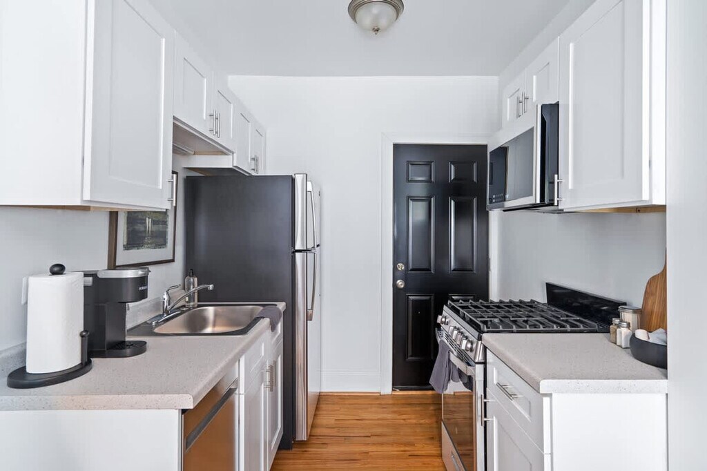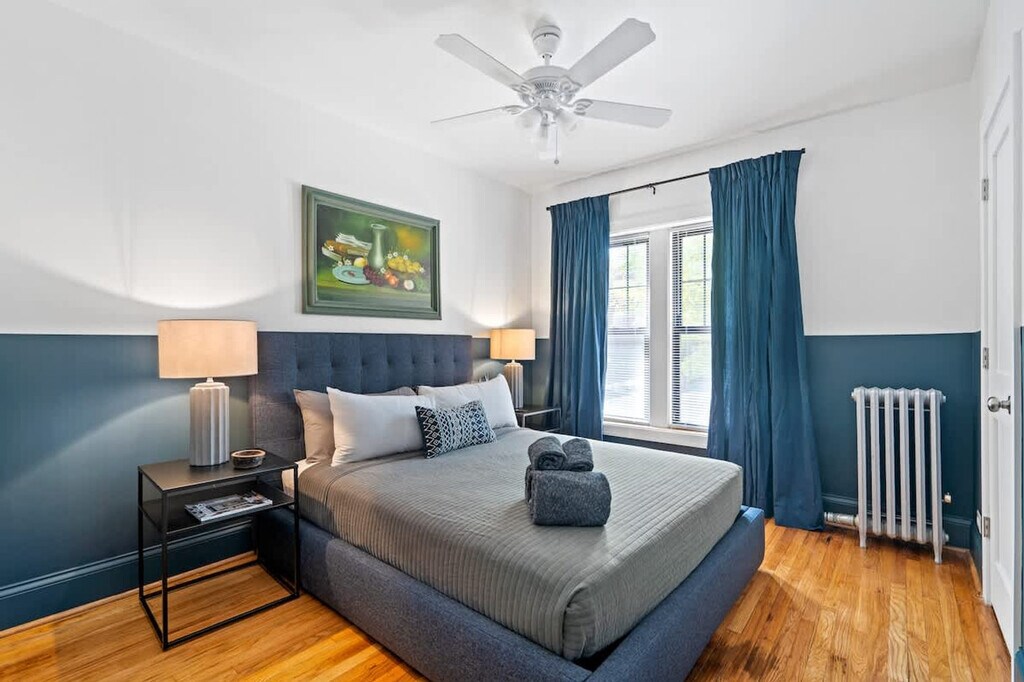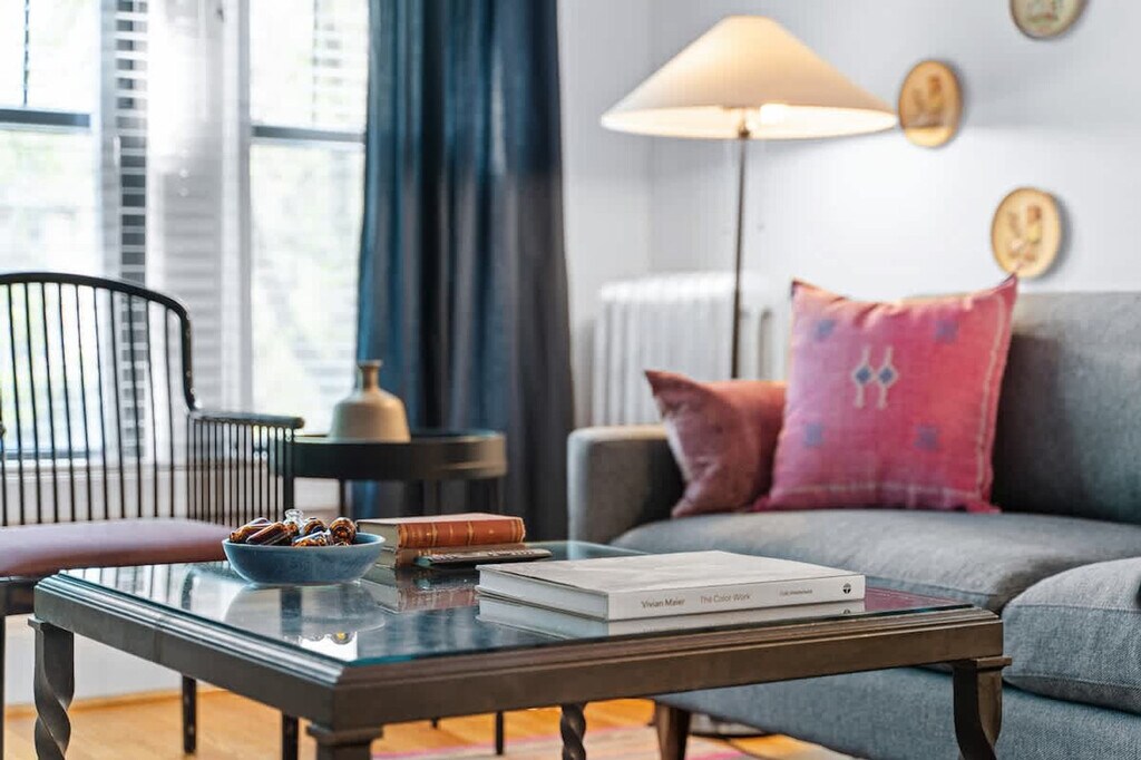 Feel at home in this lovely ground floor apartment that features wonderful large windows in all of the rooms and has all of the quirky charm that vintage buildings offer. The location literally can't be beat. I've used my years of experience as a superhost and designer to set up this unique flat so that it includes all the comforts of home while embracing the quirky charm that only a vintage building can offer. Parking isn't included and the streets around us are all either permitted (local residents only) or metered, so make sure not to use those spots. For the easiest parking, we highly recommend using a service called SpotHero to reserve a spot nearby before you arrive. During your stay as my guest, you receive a free membership to The Metropolitan, a members-only club and co-working space located on the 66th and 67th floors of the Willis Tower (for reservations less than 14 days only). Included with your membership are upscale co-working space, dining, bars and stunning views of Chicago and Lake Michigan. The apartment is a 5-minute walk from Wrigley Field, the bustling Southport shopping corridor, and both the red line and brown line subway stations. It's about a 10-minute walk to all of the 'Boystown' nightlife. Although shops and restaurants are only a short walk away, the area feels peaceful and secluded. Any point of interest in Chicago can easily be reached by walking, public transit, or Uber. Wrigley Field & Wrigleyville are a 4-minute walk, Southport Corridor is a 5-minute walk, Music Box Theater is a 10-minute walk, Metro Theatre is a 6-minute walk, Boystown is a 13-minute walk or 5 min via public transit, Lakefront Trail & Belmont Harbor is 8 min via public transit or driving, Lincoln Park Zoo is 20 min via public transit or 12-min drive and Downtown is 20 min via public transit or 16-min drive. Southport 'L' train stop (Brown line) is an 8-minute walk, Addison 'L' train stop (Red/Brown lines) is a 7-minute walk, O'Hare is 50 min via public transit or ~35 min drive and Midway is 65 min via public transit or ~45 min drive. Because my flat is located in a 100+ year-old urban building on the ground floor, you may occasionally find an errant cobweb or two, in spite of my hardworking staff's best efforts. They clean the flat several times a week but you may still see the work of an enterprising critter pop up during your stay. You may also occasionally hear some noise from my neighbors or passersby. There is no smoking of any kind in the apartment, and your reservation will be automatically and immediately cancelled if there is any smoking reported. There will also be an automatic $500 cleaning fee if there is any smoke smell inside of the apartment. Quiet hours are from 10 pm to 8 am. There is an automatic $100 late check-out charge if you're still in the property 20 minutes after check-out. There is a $45 fee if you if you lock yourself out or lose your key. Check-in begins at 4 p.m. and check-out ends at 11 a.m. [SI]
