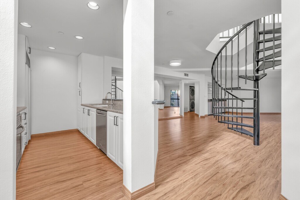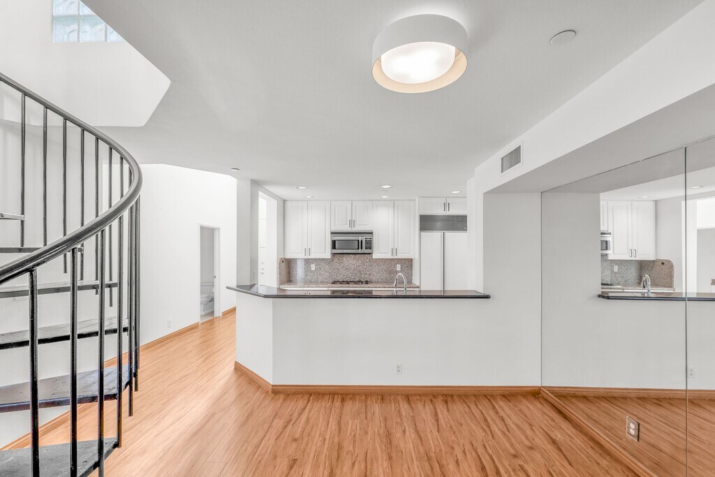 Welcome to this New York Style Architectural Penthouse in Brentwood. Discover urban living in this distinctive 2-bedroom, 2.5-bathroom, two-story townhouse, shy of 1700 SF living space. Bold lines, dramatic volume, and exceptional natural light define the main living spaces, creating a unique ambiance rarely found on the Westside. The thoughtful floor plan offers two bedroom suites on two separate floors, providing exceptional privacy and flexibility for elevated living, guests, or a polished work-from-home setup. The main level opens to a private balcony, perfect for morning coffee or evening unwinding. A separate Den area with a wet bar creates a cozy spot for intimate gatherings. In unit washer & dryer on the first floor provides ease & comfort. A unique spiral staircase leads you to the second floor of this unit where you find the Primary suite and a private rooftop deck offering a charming open-air retreat, ideal for lounging or enjoying Brentwood's peaceful surroundings. Set within a distinctive architectural building on a quiet street yet moments from San Vicente's boutiques, cafes, and eateries. Amenities are: Gym, Storage area, 2 Tandem Parking Spots. The unit is currently vacant and Move-in Ready. Rental Terms: Annual: $6,000 Per Month