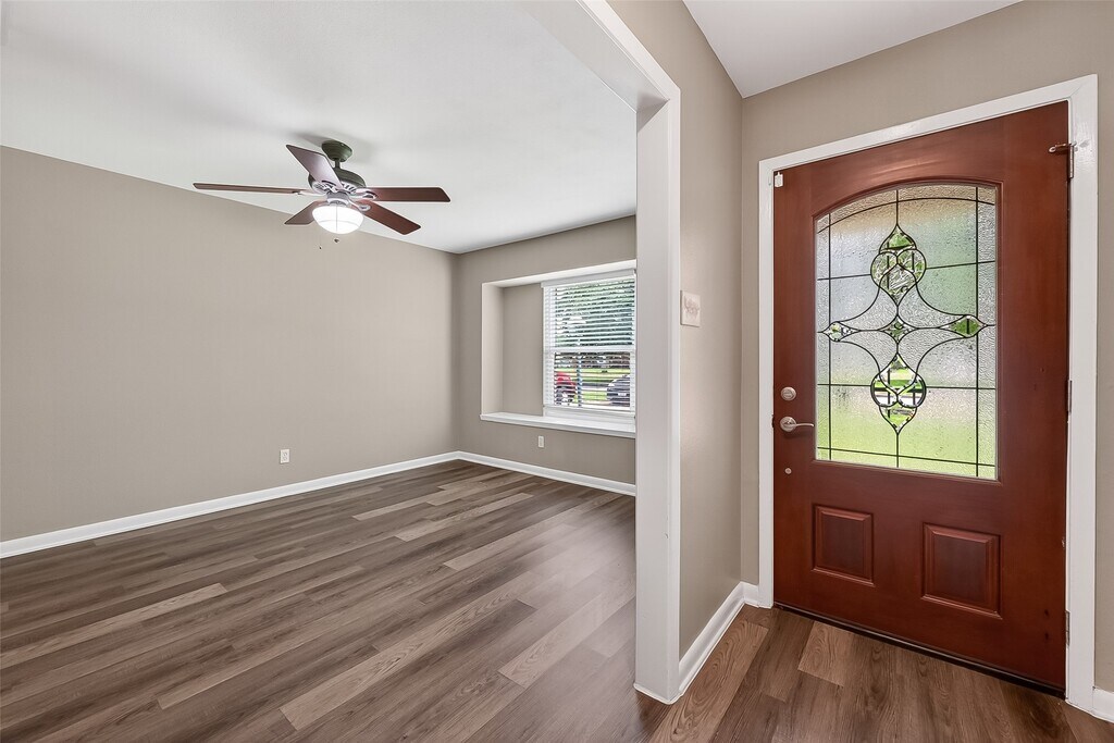 Charming 3-bedroom,2-bathroom home with a 2-car garage,covered patio,and a quaint backyard feature within a fully fenced yard and a nice well. The main living area showcases wood-look vinyl flooring,a cozy window bench,a ceiling fan,and abundant natural light. A secondary living space features vaulted ceilings,a ceiling fan,and convenient access to both the kitchen and backyard,ideal for relaxing or entertaining. The kitchen offers ample white cabinetry and stainless steel appliances,providing both style and functionality. All bedrooms are spacious,carpeted,and include ceiling fans. The primary suite features a private full bathroom. Conveniently located near Everglade Park,dining options,Skyline Branch Library,and I-30 for easy commuting. - No dogs over 75 lbs nor aggressive breeds. MLS# 21244263