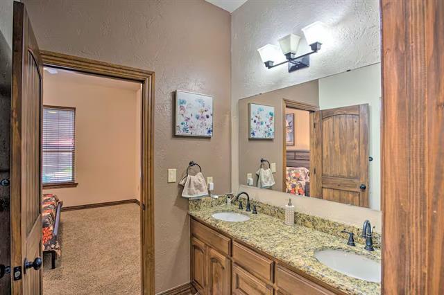 Experience resort-style country living with this stunning 5-bedroom, 3.5-bath custom home for lease, set on 13 private acres in Kaufman ISD. This spacious property features an oversized garage, a 4-stall horse barn equipped with water and electricity, a 40x50 workshop with electricity, and an RV hookup with 30-amp service—perfect for those needing space and functionality. Enjoy outdoor living at its finest with an in-ground pool complete with water features and a hot tub. The outdoor kitchen is designed for entertaining, offering a full bath with shower, a wood-burning fireplace, seating area, and bar. Tucked away among the trees, a separate set of living quarters with a full bath provides additional flexibility for guests or extended use. Inside, the home boasts an open-concept layout with a wood-burning fireplace and granite countertops throughout. The primary suite is a true retreat, featuring a soaking tub, separate walk-in shower, dual vanities, and a large walk-in closet. With unmatched privacy and convenient access to I-20, this exceptional lease opportunity combines luxury, space, and country charm all in one.