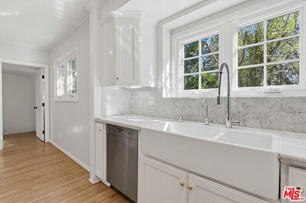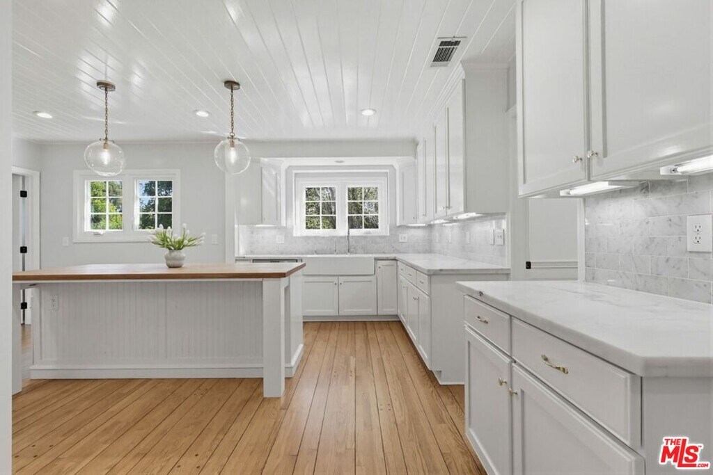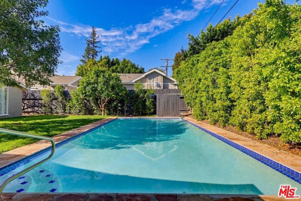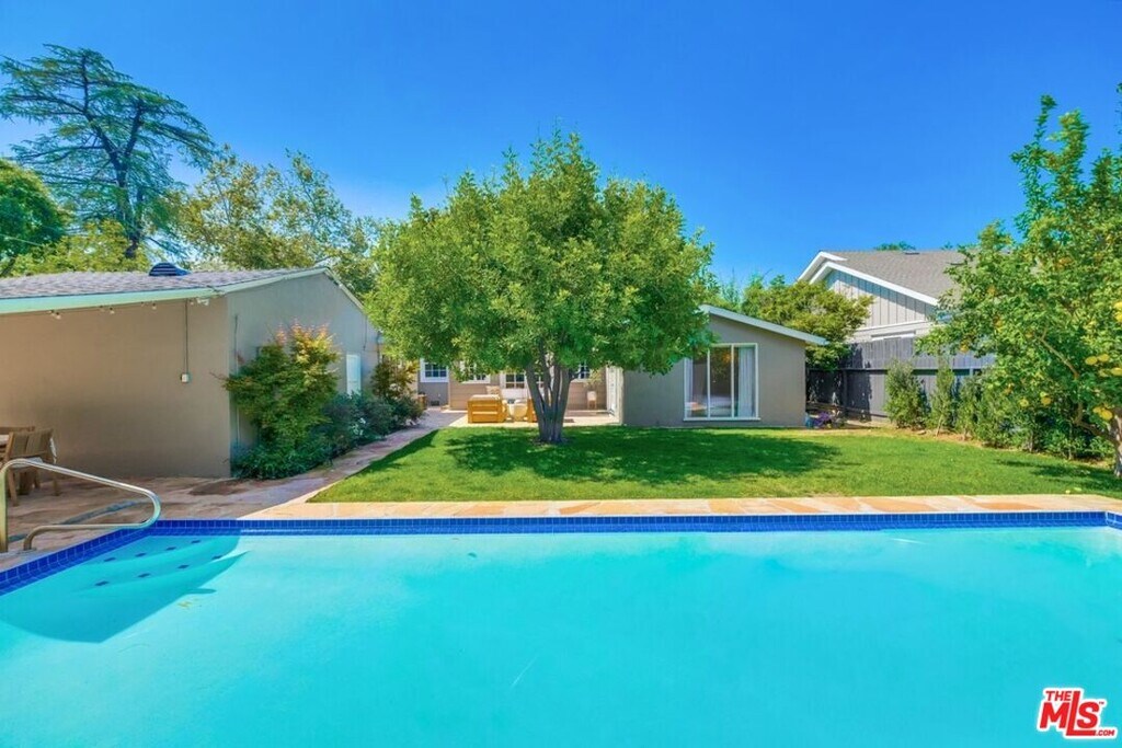 Stunning California Ranch 4 bedroom pool home on an expansive 10,000+ sq. foot corner lot in a highly sought after part of Valley Village. This fully renovated single story home is close to award winning Colfax Charter Elementary School and gives front row access to the famous Valley Village 4th of July parade. The living room features vaulted ceilings with sky lights and leads directly to a large kitchen, a flexible playroom/office, and a dining room with views of the sparkling pool. The Chef's kitchen includes a commercial grade 48 Blue Star Range with double ovens, built-in Thermador refrigerator, Miele dishwasher, large farmhouse sink, reverse osmosis water tap, marble countertops, and designer brass accents. Three bedrooms are off the main hallway, with the primary at the back of the home overlooking the sprawling backyard. A pass-through laundry room off the kitchen leads to the fourth bedroom and attached garage with ample storage. Park-like front and back yards plus multiple stone patios offer ideal spaces for al fresco living and year round entertaining. Rare opportunity to live in one of the best pockets of Valley Village on one of the largest lots!" MLS# 26652503