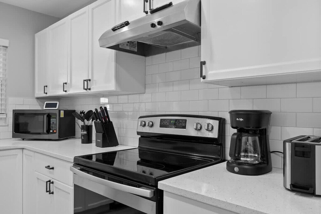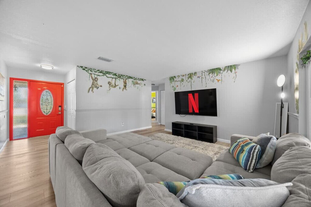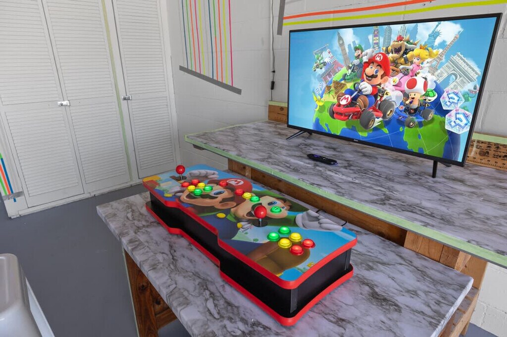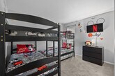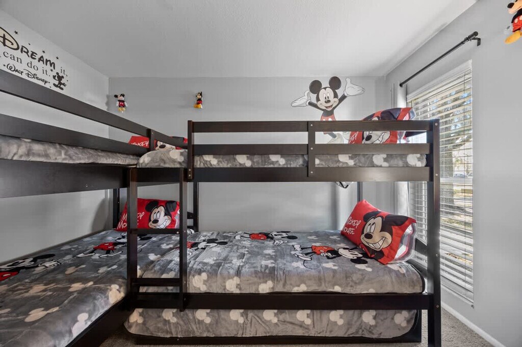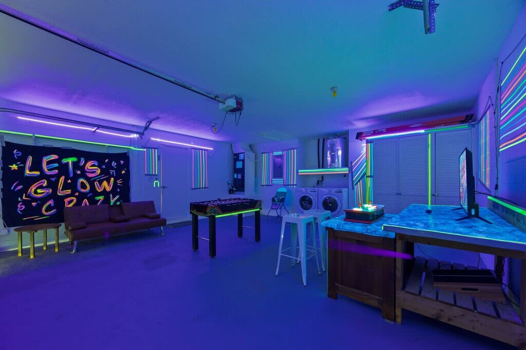 The advertised rate of $4,518/month is the lowest available price, based on a 30 day(s) stay with a move-in date of August 1, 2026. Rates vary depending on the duration of stay, season, and other parameters. For exact pricing and additional pricing components, please visit our website and enter your desired move-in and move-out dates. The rate is applicable when billed upfront; it can be higher if billed in multiple payments. Feel at home in this Kissimmee/Orlando home, perfectly positioned to dive into the magic of the area. This 4-bedroom, 3-bath home sleeps up to 13 people. This home features themed bedrooms, a glow-in-the-dark kids game room, a game console with over 6,000 games, foosball, patio furniture for up to 5 people, and smart TVs in all rooms, including the garage. It also includes a dining area, super-fast Wi-Fi, hot and cold A/C, a washer and dryer, complimentary toiletries, hair dryers, linens, and towels. The fully stocked kitchen features modern appliances including a fridge, stove, dishwasher, coffee maker, microwave, toaster, blender, dishware, and silverware. Please do not use the fireplace, as it is for decoration only. Reservation add-ons include a pack-n-play rental for $25, a high chair rental for $25, and a stroller rental for $25. Just minutes away from Disney, Universal, and SeaWorld, you’ll find everything you need for the perfect vacation. Nearby attractions include Animal Kingdom, Magic Kingdom, Epcot, Hollywood Studios, Universal Studios & Volcano Bay, SeaWorld, and Discovery Cove, all within 20 minutes. Check-in is at 4PM and check-out is at 10AM. A maximum of 4 cars is allowed at the property. Any damage or missing games are the responsibility of all guests during your reservation, which may result in additional charges. Smoking is not allowed inside the property and will result in a fine of up to $500 if the house smells like smoke. Includes a business work desk with a USB-C docking station that connects your laptop to the monitors, keyboard, webcam, and mouse. Important notes: Your laptop must have a USB-C port. Some M1/M2 MacBooks (Air 2020, Pro 13” 2020) support only one external display. M1 Pro/Max & M2 Pro/Max models support multiple monitors. Please check your laptop’s compatibility before arrival. [SI]
