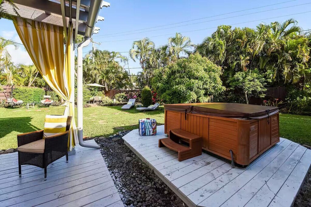 PRICE IS WEEKLY. Enjoy a stylish experience at this centrally-located place. You are renting 1 private studio room in a shared 3 bedroom house. One of the best neighborhoods in Fort Lauderdale. Private Room with Queen bed plus access to entire house, yard and HOT TUB. Shared bathroom. Beautifully fenced yard with fruit trees feels like paradise. 15 mins Uber Lyft or #40 bus. Super friendly host or keep to yourself.