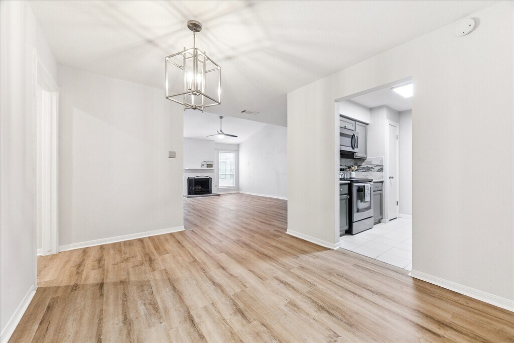 Modern TWO BEDROOM condo ideally located in the TANGLEWOOD area w/ a stunning courtyard entrance. Boasts STUNNING interiors w/ sprawling wood-look floors,SOARING CEILINGS & a bathroom makeover featuring; dual square sinks + brushed hardware,modern lighting,sprawling granite & ample storage! Beautiful kitchen & dining w/ STAINLESS STEEL appliances,rich cabinetry & level-up granite. Notice the stunning horizontal tile backsplash and sizable pantry! Boasts ceiling fans in every room,modern paint colors,cozy fireplace & walk-in closets. *BONUS* fridge/washer/dryer included in the rent! Also,water and trash pickup included. Unit is tucked quietly away from the street w/ an OVERSIZED 2-car attached garage. Complex features a community POOL w/ gated access and a small/mini gym in the clubhouse for resident use only. An unbeatable condo with UPDATES GALORE in a HOT location! Schedule your private showing today! MLS# 52800786