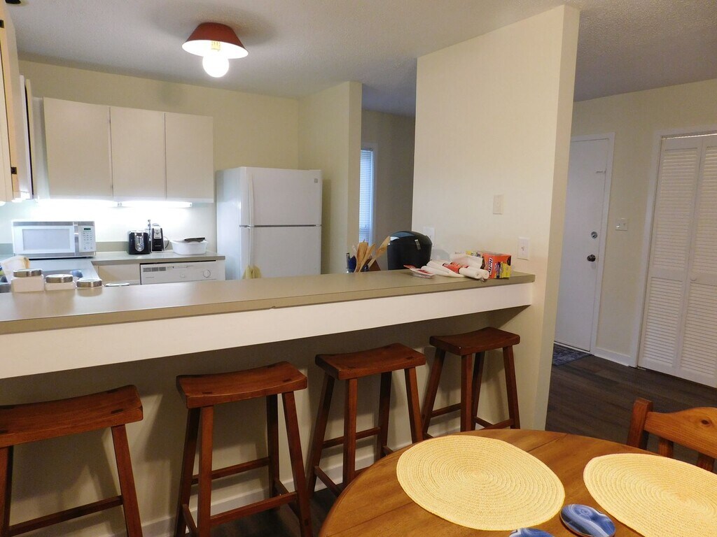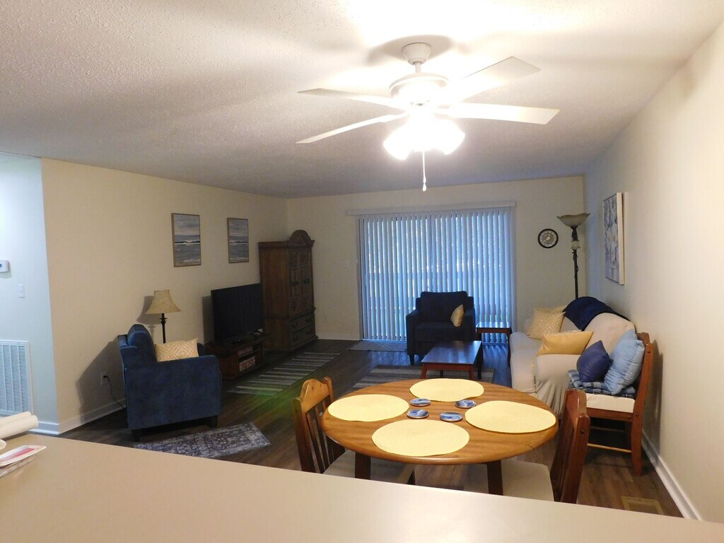 Introducing 1201 Harbourside Drive, a charming waterfront condo located in the desirable Fairfield Harbour subdivision in New Bern, NC. This fully furnished 1 bedroom, 1 bathroom home boasts a galley a style kitchen with breakfast bar and stools, a spacious living room with dining area, and sliding patio doors leading out to a screened porch from both the living room and bedroom. Enjoy the convenience of a laundry closet with a washer and dryer set included, as well as the luxury of having electric, water, sewer, and trash pickup all included. Pets are not welcome in this lovely abode, and lawn maintenance is provided for your convenience. Don't miss out on this fantastic opportunity to live in a beautiful waterfront setting with handicapp accessible ramp and all the amenities you need for comfortable living. No smoking inside or outside the unit.
