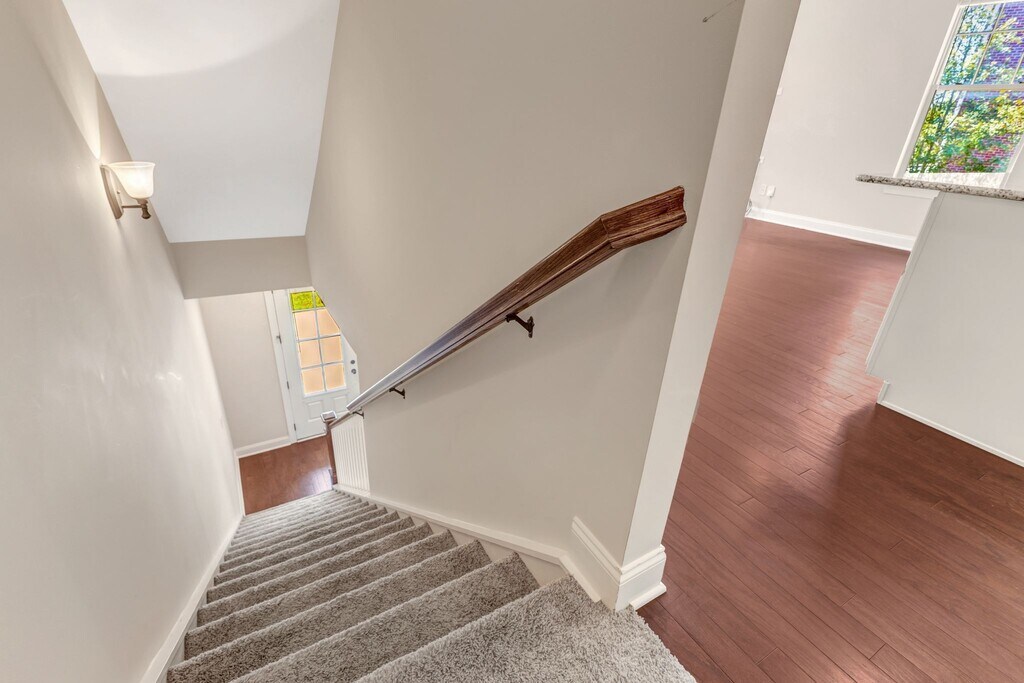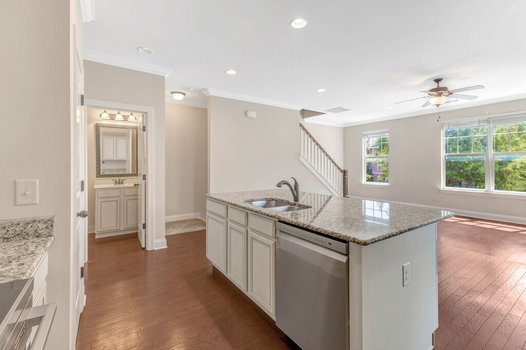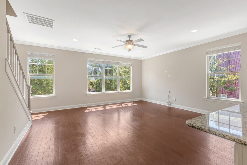 Beautiful end-unit townhome for rent in a highly convenient Franklin location. A short drive to I-65 and all the Cool Springs shopping and dining, plus walkable access to local shopping/dining. The main level features an open living room and kitchen with granite countertops, an island, and brand-new stainless steel appliances, plus a half bath and access from the attached garage. The lower level offers a flexible den/office space with French doors and a full bathroom. All three bedrooms are upstairs, each with ample closet space, along with a laundry room on the same floor (washer and dryer included). Additional highlights include a charming front porch, 2-car rear-entry garage, and extra guest parking out front. Quiet, well-maintained neighborhood and move-in ready!