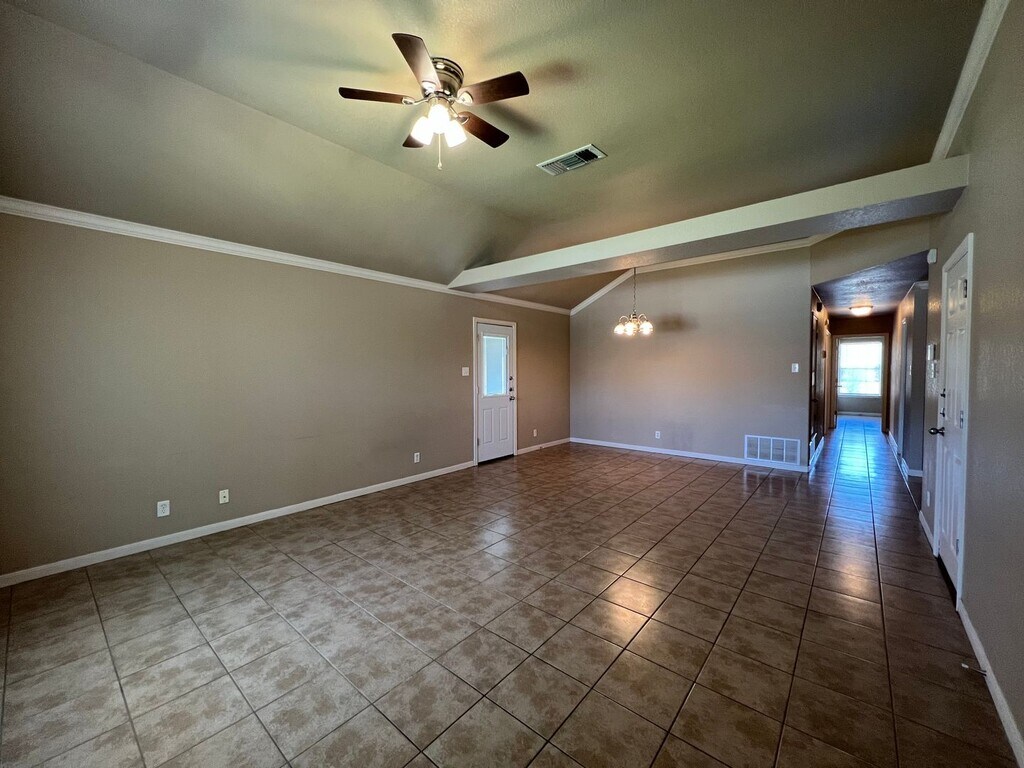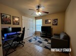 View 360 Virtual Tour: Welcome to this 3-bedroom, 2-bath duplex featuring ceramic tile flooring throughout for easy upkeep and a clean, modern feel. The kitchen includes traditional white appliances and ample cabinet storage, providing plenty of space for everyday essentials. Ceiling fans are installed in the living areas and all bedrooms for added comfort. Both bathrooms offer extra storage, including convenient head knocker cabinets. A large, fenced backyard adds outdoor space for relaxation, pets, or entertaining. Disclaimer: The furnishings or enhancements shown are AI-generated and intended for inspiration only. They may not reflect the actual scale, condition, or current features of the property.