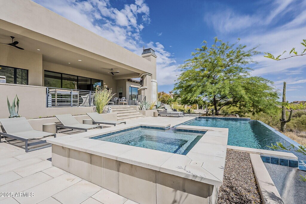 Welcome to this stunning Mediterranean style house located in the desirable gated community of Fountain Hills,AZ. This property boasts four spacious bedrooms,including two master suites,each with their own walk-in closets,and 4.5 bathrooms. The house is designed with 9+ flat ceilings,providing an open and airy feel. The kitchen is a chef's dream,complete with a wet bar and built-in BBQ for all your entertaining needs. Step outside to your private patios and immerse yourself in the beauty of the desert landscaping. For those hot summer days,take a dip in your private pool. The house also features a generous 3 car garage. This property truly offers a luxurious lifestyle in a prime location.