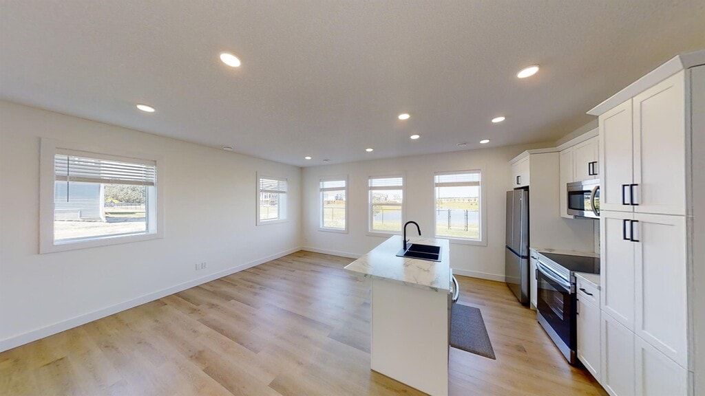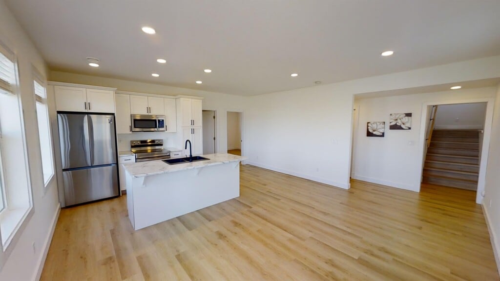 2 bed 1 bath lower unit in Kensington! Open and bright living space with view of the pond. Vinyl and tile throughout - no carpet. Kitchen has an island, upgraded stainless appliances, and ample cabinet space. 2 good sized bedrooms, 1 with a walk-in closet. Tiled bathroom. Separate laundry room. Single attached garage. *Sorry, no pets here* Utilities will be included for an additional $250/mo flat rate. See it in 3D!