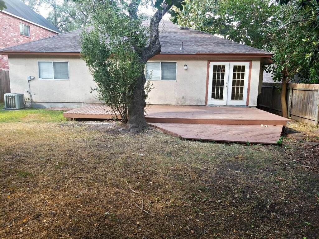 Available April 1, 2026. This 3-bedroom, 2-bathroom home with a 2-car garage features an open floor plan, located in the desirable Westcreek area. Enjoy beautiful ceramic tile flooring in the living room, dining room, kitchen, and both bathrooms, while the bedrooms are finished with laminate flooring—there's no carpet in this home! The spacious island kitchen offers plenty of cabinet storage, and French doors lead to a lovely backyard, complete with a large 24 x 15 deck that's perfect for gatherings. Mature trees provide shade during the hot summer months. This home is situated on a cul-de-sac and is conveniently close to schools, shopping, and Lackland AFB.