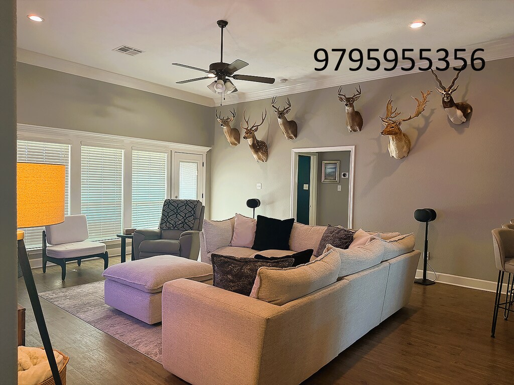 This is a one-story home with 4 bedrooms and 3 full bathrooms. Each bedroom has a walk-in closet. The kitchen is open to the family and dining areas and includes a granite bar top, gas stove, pantry, and plenty of cabinet space. The owner provides a refrigerator. The primary bedroom has an oversized walk-in shower and double sinks, and faux wood blinds are installed throughout the home. Other features include two covered patios, sprinkler system, gutters, garage door opener, and a two-car garage. The home is in a quiet neighborhood next to Southern Oaks Park and is close to schools, shopping, and main work routes. Nearby stores include HEB, Kroger, Walmart, and Costco, along with sports centers and medical facilities. Minimum requirements are a 700 credit score and income of three times the rent. A washer and dryer can be provided. Agent commission is honored.