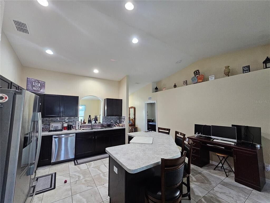 FOR LEASE: Furnished,Solar-Powered Home in Prime Davenport Location! Arriving just in time to decorate for the holidays,this beautiful home is available for lease starting December 8th and is offered fully furnished—all you need is your suitcase and toothbrush! Enjoy significantly LOW monthly power bills thanks to the installed Solar Panels,offering a major cost-saving benefit. This well-maintained 3-bedroom,2-bathroom residence features a highly desirable split bedroom design,separating the primary suite from the guest rooms for maximum privacy. The spacious interior includes a large Family Room and a separate Dining Room,perfect for gathering. You must see the impressive kitchen island,which offers plenty of room for both cooking and entertaining. Throughout the home,you will find high-quality,low-maintenance laminate flooring,complemented by durable ceramic tile in the kitchen and bathrooms. Location is everything! This home is centrally situated for exploring the best of Davenport and its surroundings. Just minutes away,you'll find Posner Park for convenient shopping and dining. For family fun and outdoor activities,Northeast Regional Park (with playgrounds,sports fields,and scenic Lake Davenport trails) is a quick drive away. Best of all,major attractions are within easy reach,with Walt Disney World Resort only about 20 miles away. Come see this fantastic home and make it your sweet home today! MLS# G5104461