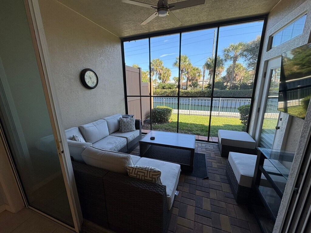 Gorgeous and rarely available for rent Makarios Carriage Home. This spacious unit is tastefully appointed complete with two large bedrooms both with easy bath access. Beautiful kitchen. Large living area with 65'' TV. Peaceful lanai with comfortable outdoor sectional couch and large TV. One car garage with extra fridge. Community has pool that is heated in winter months. Only steps from the beach!!!
