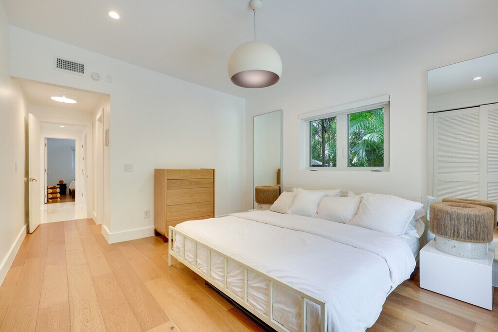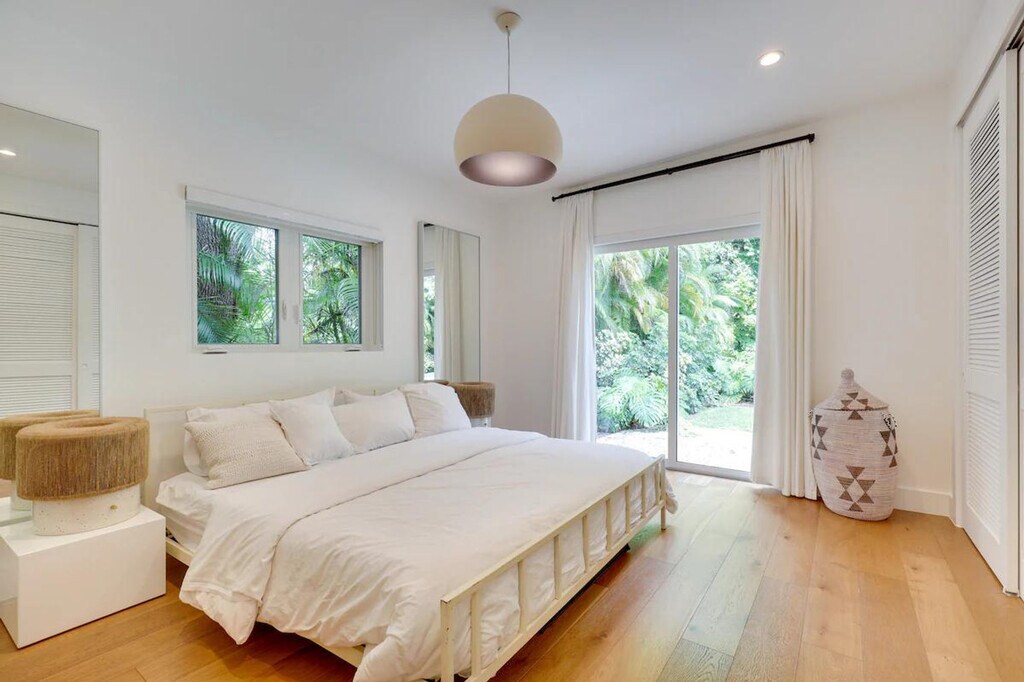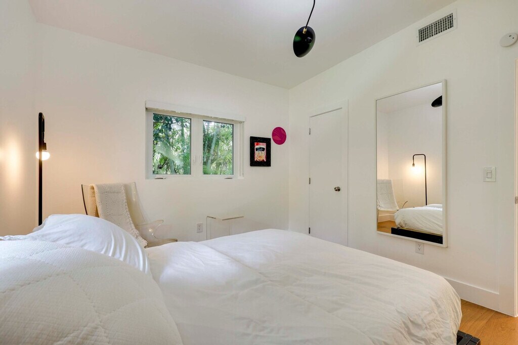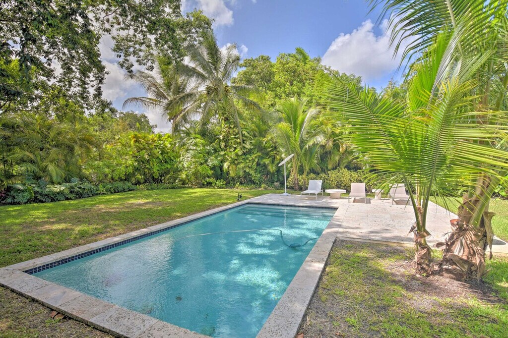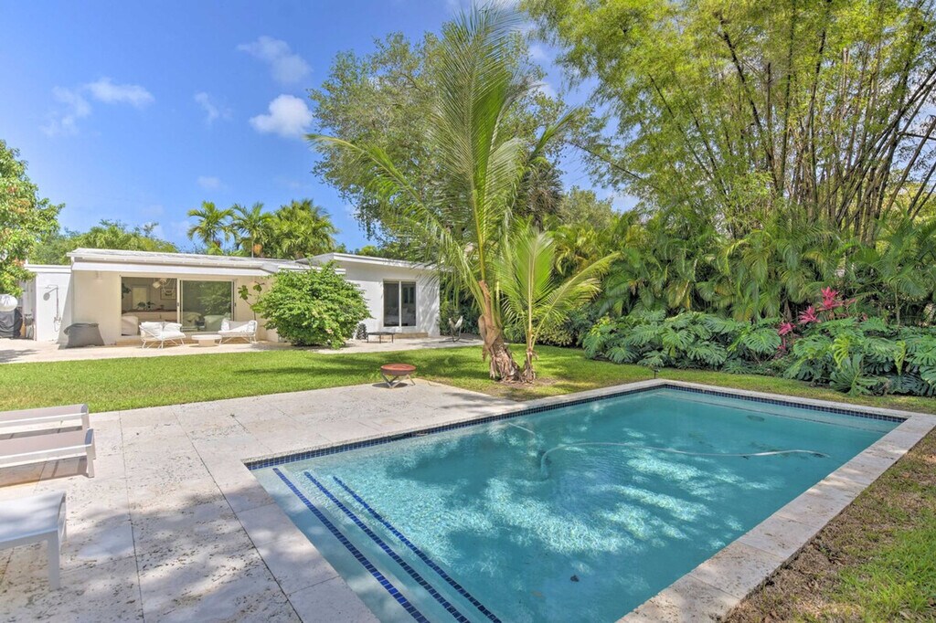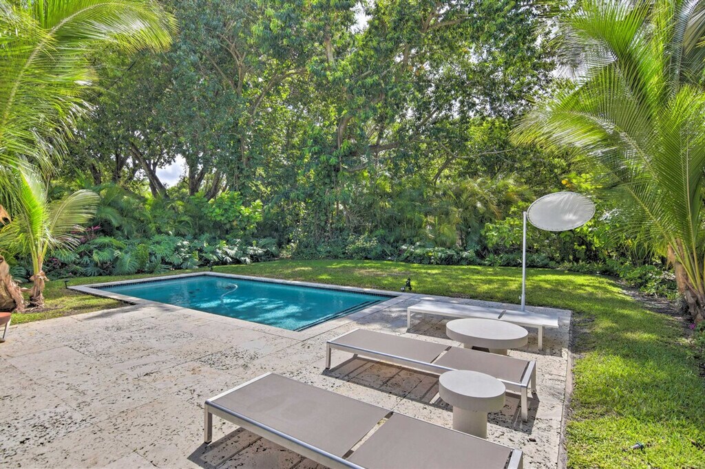 Purify your mind and body at this MiMo-style urban retreat that's blissfully bright, immaculate, and soothing as a spa. This 3-bedroom, 2-bath vacation rental is the perfect getaway to hunker down with its fast internet, private saltwater pool, heated outdoor shower, and jungle-like backyard to birdwatch. Biscayne Park is close to everywhere you want to be — just minutes to North Beach and a quick hop to Wynwood. Whether you’re traveling for business or pleasure, this stylish oasis is designed to inspire tranquility and provide a rejuvenating escape after a long day of experiencing all that Florida has to offer. The apartment features a private saltwater pool with a depth of 2’ to 5’, a modern interior, board games, a smart TV, two flat-screen TVs, a steam shower, walk-in closets, and an open floor plan. The kitchen is fully equipped with a blender, coffee grinder, coffee maker, cooking basics, Crockpot, spices, dishware, flatware, ice maker, microwave, organic tea and coffee, toaster, toaster oven, and non-toxic cooking pans and utensils. The home offers added options such as a chef, exercise trainer, and spa therapies. There is an optional daily pool heat fee of $10 plus fees and taxes, which is paid pre-trip and applied to the entire stay. Biscayne Park is centrally located, offering easy access to North Beach and Wynwood, making it an ideal spot for exploring the vibrant surroundings. The property features three exterior security cameras facing the front door, side of the home, and front of the home. The cameras are outward facing and do not look into interior spaces. The cameras record video and sound when activated by motion and can be turned off by guests on-site. The apartment has a no smoking, no pets, and no parties policy. Guests must be at least 25 years old to book. Additional fees and taxes may apply. Photo ID may be required upon check-in. [SI]