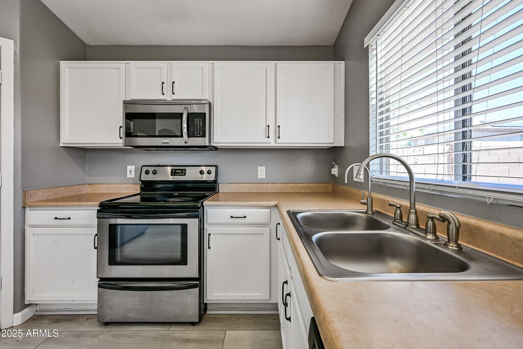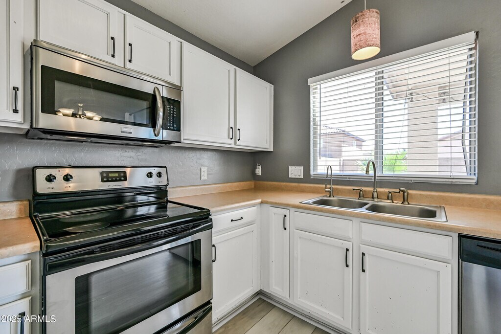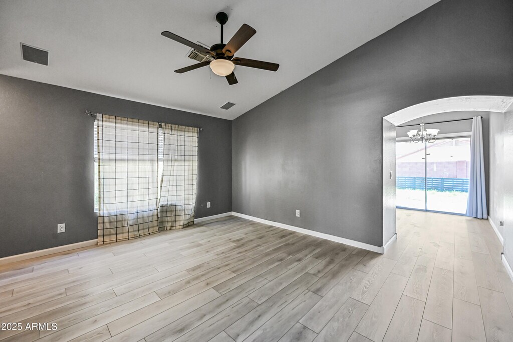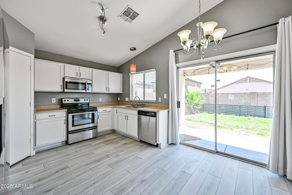 Make yourself at home in this beautifully maintained single-story rental located in a quiet El Mirage neighborhood. Step inside to vaulted ceilings,neutral paint tones,and easy-to-clean tile flooring throughout the main living areas. The bright and functional kitchen comes equipped with an island,pantry,wood cabinetry,and a mix of stainless and black appliances perfect for everyday cooking and casual entertaining. Each bedroom is spacious and offers plenty of comfort and storage. The backyard is a great place to relax,with a covered patio,green lawn,and low-maintenance landscaping. You'll love the convenience of being close to parks,schools,and shopping everything you need is just minutes away. This move-in ready home won't stay on the market long