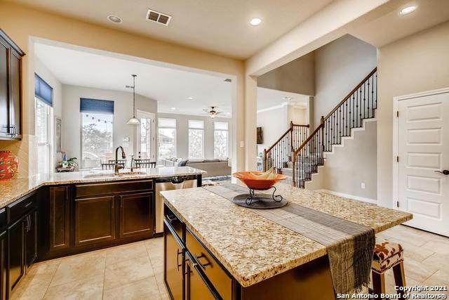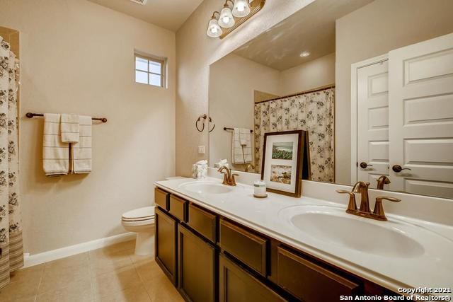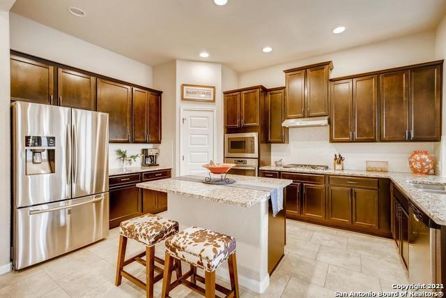 Stunningly beautiful, bright, east facing home in Fronterra at Westpointe. The kitchen offers a huge island with many cabinets and counter top space, as well as a large pantry. Looks brand new with a modern layout - large windows in living room, master bedroom, etc. Greenbelt at back with great views. Very peaceful neighborhood surrounded by natural beauty and great school district. Very close to Alamo Ranch, shopping and schools.