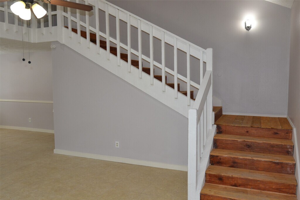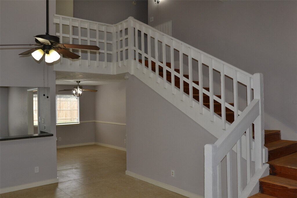 Updated home with all tile flooring on 1st floor,wood stairs and laminate wood upstairs. Den features high ceiling,wood burning fireplace,ceiling fan and open staircase. Stainless steel appliances including refrigerator. Complete fresh interior paint. New LED lighting throughout,new window blinds. Backyard is fenced and has a patio. Auto garage door opener. MLS# 56583163