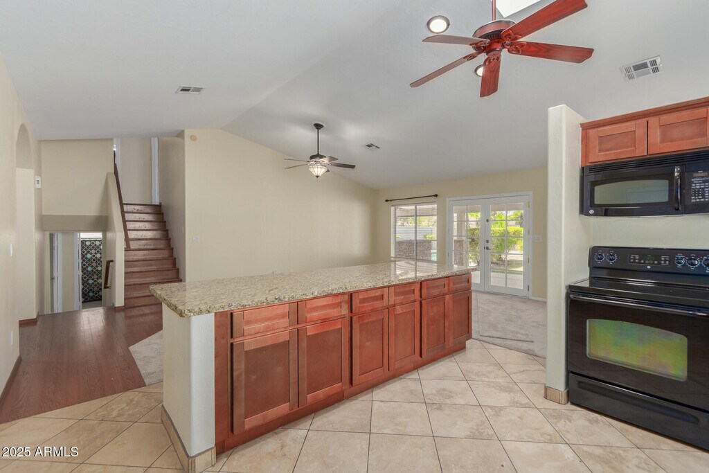Discover this beautifully updated 5-bedroom,3-bathroom home in this sought-after Ahwatukee neighborhood. The home boasts elegant wood flooring in all major walkways and plush carpet throughout the rest of the house. The remodeled kitchen features modern cabinets and stunning granite countertops,making it a culinary delight. The master bedroom and two additional bedrooms are situated upstairs,while the main floor hosts a spacious kitchen,great room,and convenient laundry area. The lower level offers two more bedrooms and a versatile large den that can be used as an office,workout room,or additional living space. Step outside to experience resort-style living in your own backyard. Enjoy the refreshing pebble tec pool complete with a bench and table,perfect for relaxation. Entertain guests with the outdoor fireplace and bar,or unwind in the lush grass area surrounded by mature citrus trees. A gate provides easy access to the community walking/biking path for added convenience. This Ahwatukee gem is the perfect blend of modern updates and luxurious outdoor amenities,ready to welcome you home.