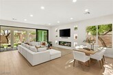 This stunning Southern Highlands home has been beautifully renovated with modern luxury and no detail overlooked.The open great room features a sleek linear fireplace, wet bar and multi-panel folding doors that open fully to the backyard—ideal for seamless indoor/outdoor entertaining. The kitchen is a showstopper with marble countertops and professional-grade stainless appliances. The luxurious primary suite includes a spa-inspired marble bath with a soaking tub, custom shower, makeup vanity and LED-lit mirrors. A spacious secondary primary suite provides added flexibility. The private courtyard creates a perfect retreat for relaxing or hosting guests with a cozy fireplace,while a separate casita with private entry is ideal for visitors or a home office. The backyard is beautifully landscaped and has a covered patio for year-round enjoyment. Located near all the premier amenities Southern Highlands has to offer, this home is a true gem in one of Las Vegas’s most desirable communities.