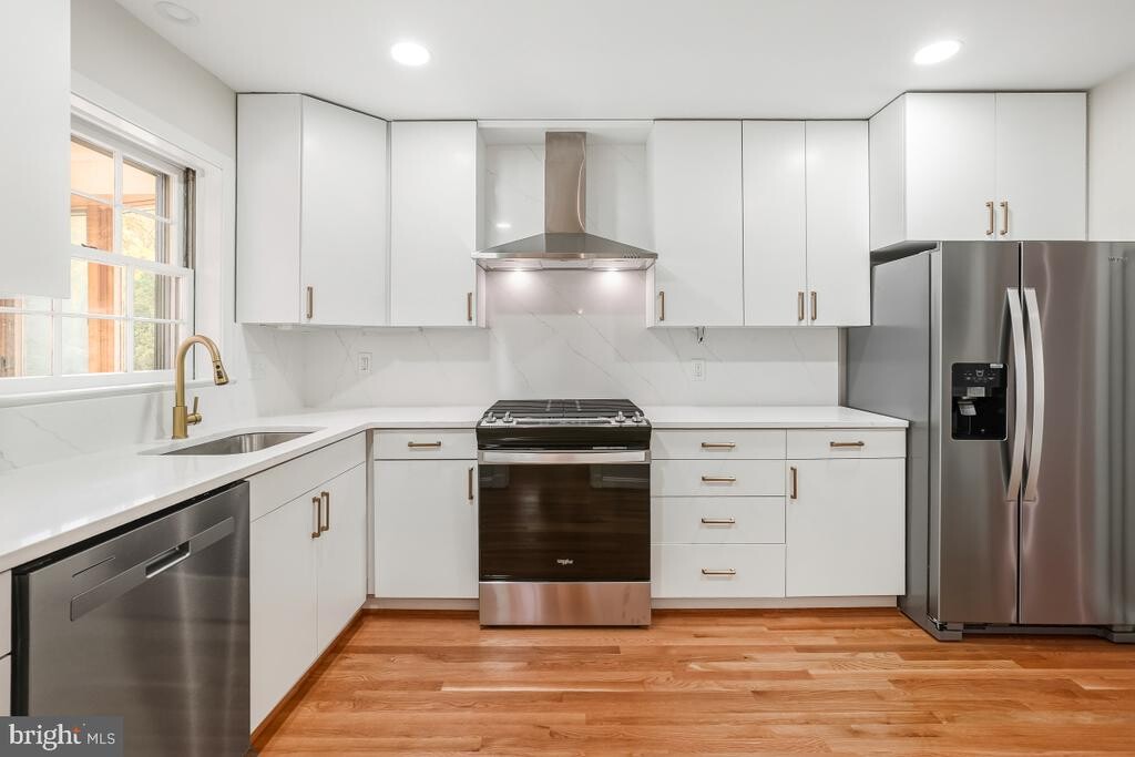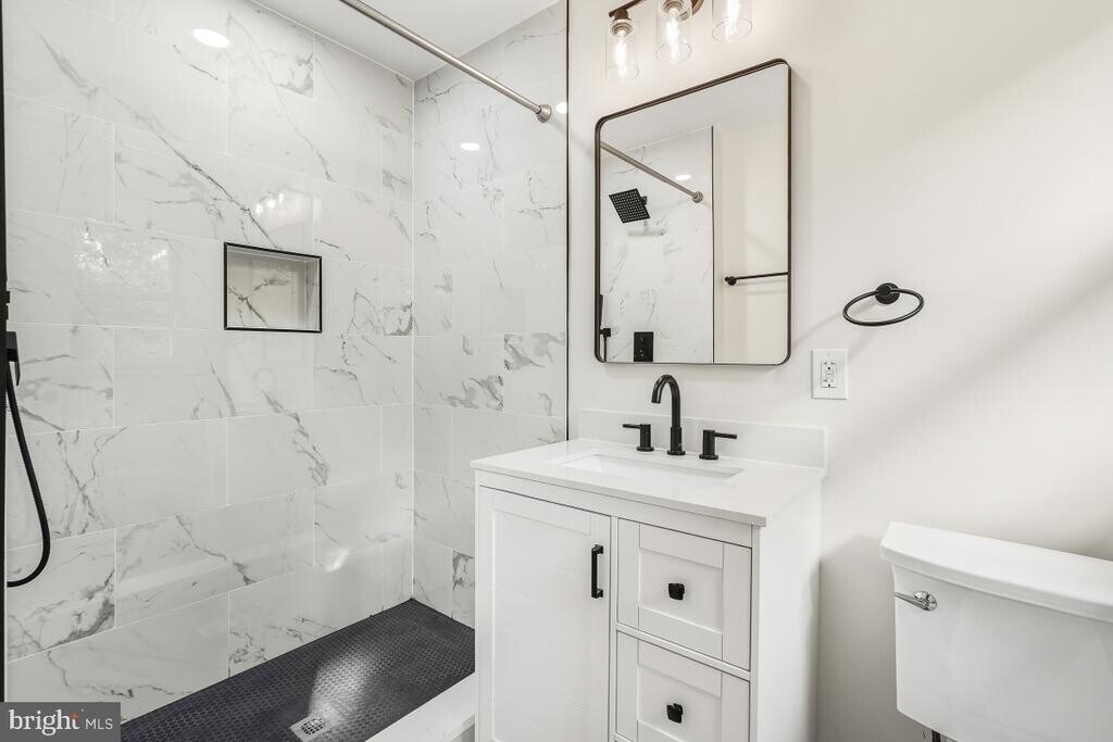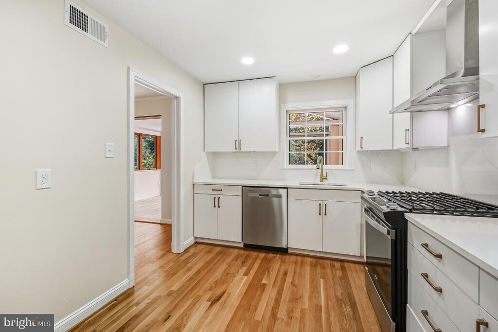 4-level split home with close to 3400 square feet of living space--completely renovated from top to bottom. This house is a stunner with really nothing else like it currently available in the area. The entry foyer opens to a massive living room with a gorgeous coffered ceiling and wood-burning fireplace. The dining room leads to a glass-enclosed sunroom with a cathedral ceiling and attached deck and lower-level patio--perfect for entertaining or unwinding after a long day at work. The large rear yard backs to trees and parkland for privacy. There are 3 spacious bedrooms upstairs, 2 fully renovated bathrooms and gorgeous refinished hardwood floors on 2 levels. The lower level includes a family room, a 3rd full bathroom, a bar/kitchenette area, and an over-sized garage with lots of storage. The 4th lower level includes a legal bedroom, a den, plus an additional rec/bonus room with a separate entrance for multiple potential uses (home office, workout room, kids playroom, storage and more) . Other features include a new 2-zone HVAC system, newer roof, and a renovated kitchen with gorgeous stainless steel appliances, quartz countertops and undermount lighting. You simply won't find anything else like this for rent in the area at any price point. Convenient to everything--I-495, the ICC (MD-200) and points East to I-95 and West (Gaithersburg/Bethesda). MINIMUM CREDIT SCORE 680. NO SMOKING/NO PETS