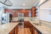 4 Bedroom,3 1/2 baths, 2600 square feet, 3-level home with sunroom. New paint and carpet! First floor has family/bonus room or could be used as in-law suite. Open-spacious living/kitchen area, gas fireplace, hardwoods, granite counters, owner's suite with separate shower, deck on second story, patio area on first floor. Single car garage. Located near community pool and walking distance to shopping.