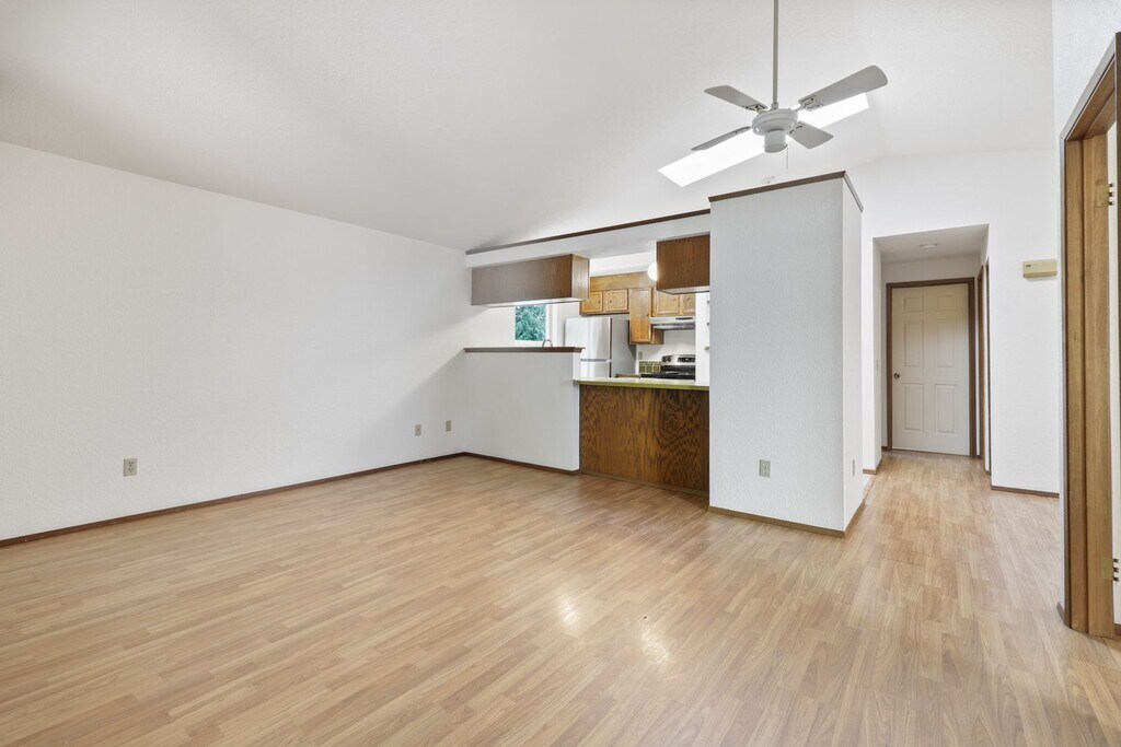 Step into comfort and convenience with this move-in-ready Tumwater rambler! Offering 2 bedrooms plus a versatile den and 1.5 bathrooms, this home is perfect for modern living. The cozy living room features a gas wall heater, while the dining area and kitchen—complete with a refrigerator, dishwasher, and range/oven—make everyday meals a delight. Enjoy the modern touches of LVP flooring, plush carpet in the bedrooms, and skylights that fill the space with natural light. Vaulted ceilings add an airy feel, and the walk-in closet provides ample storage. With electric wall heat and an additional gas wall unit in the living room, you'll stay warm all winter long. Built in 1985 and offering 983 sq. ft. of living space, this home also boasts a charming backyard with a covered patio, perfect for relaxing or entertaining. The 1-car garage provides added convenience. Located in the heart of Tumwater, this home is close to everything—shopping, restaurants, parks, and more. Plus, with easy access to I-5 and Hwy 101, commuting is a breeze. Situated in the sought-after Tumwater School District (E: Tumwater, M: Tumwater, H: Black Hills), this home is a fantastic find! Pets: No Pets, not negotiable. Call to schedule an appointment to view this home. We do not accept comprehensive reusable tenant screening reports. Rental Qualifications: We use a third-party pet policy service, all applicants must create a tenant-only or service animal profile. Applicants should please go to this link: Other fees: Re-key fee $75.00 payable upon approval