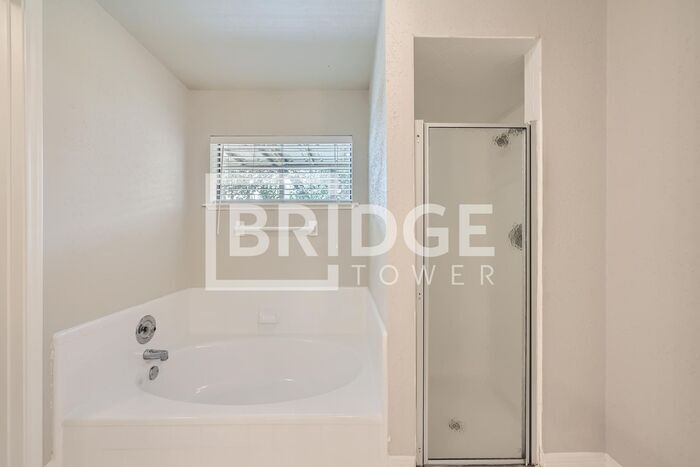 Stunning 4-bedroom, 3.5-bath, 2-story home in a desirable neighborhood. The large living room features a brick fireplace and wet bar, seamlessly flowing into the dining room and kitchen with a breakfast nook. The kitchen boasts ample countertop and cabinet space, double ovens, and a gas cooktop. The primary bedroom is conveniently located downstairs, featuring a soaking tub, dual sinks, and a walk-in closet. Enjoy the beautiful fenced backyard with a covered patio, perfect for outdoor gatherings. This home offers a great layout with plenty of natural light throughout. Don't miss this gem! Pet Friendly! We keep your safety our top priority with our self show option. Air Filter Fee of $12, Pest Control Fee of $25 and Smart Home Access fee of $45 charged monthly. Applications are $65 per person 18 and over, and can be easily completed on our website. *Bridge Tower Homes does not advertise on Craigslist, 5 mile, or any other classified advertising services Take a 3D Tour Here: This property allows self guided viewing without an appointment. Contact for details.