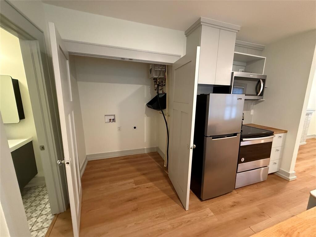This beautifully updated 1934 duplex is just steps from the lively Western Avenue District,offering a perfect mix of vintage charm and modern convenience. Inside,hardwood floors and abundant natural light create a warm,inviting atmosphere. The living room flows into the kitchen,which features a farmhouse sink,butcher block countertops,soft-close drawers,and a breakfast nook. A full washer/dryer hookup is conveniently tucked away. The bedroom includes a custom wall closet system,and the bathroom boasts subway tile and a floating vanity. Lawn care is included,making this home ideal for low-maintenance living. While there is no fenced yard,its welcoming community and convenient location make it a great choice.