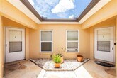 One or more photo(s) has been virtually staged. Large,updated,super clean condo / quad unit to make your new home! You will love this 2 bedroom,2 full bath home. It has 1,250 sq feet of living space - large bedrooms,walk-in closets,open concept living and dining area,nice kitchen with all appliances - fridge,microwave,dishwasher and range. New light fixtures and ceiling fans throughout. Enjoy quiet time on the large,screened in back lanai with new fan that overlooks a beautiful golf course. You have your own garage for your car or storage. Lots of parking area in the front of the property. Professional landscaping included. And,washer and dryer in your own laundry room right in your home! Very private. Very clean. Great location. You won't find a better place to live for this price. Unit D is an end unit with an extra window in the kitchen for even more lighting. Schedule your showing today!