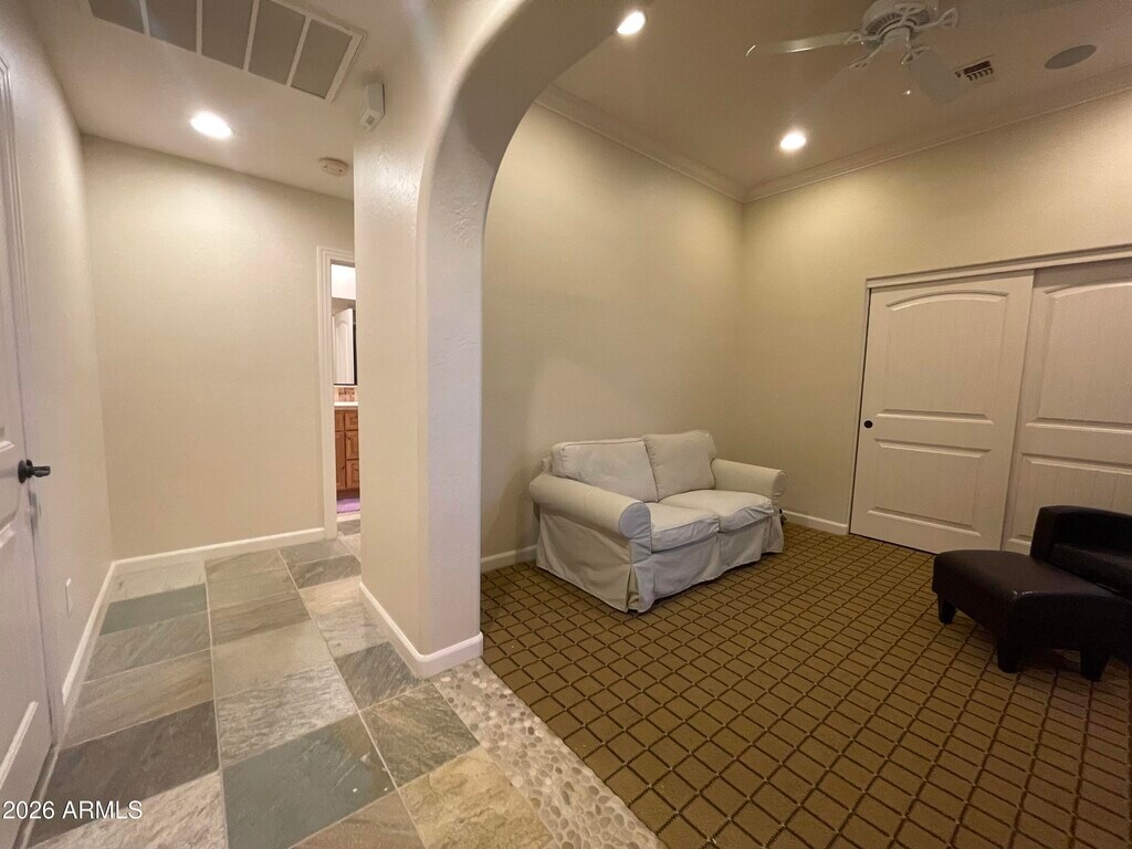 Furnished Rental for 3 months to 6 months lease between the dates of May 31st - Oct 31st,2026 - Guard Gated Blackstone Country Club in Vistancia - Single Level Patio Home - Great room,Split floorpan with 2 Bedrooms plus Den - 2 Car Air Conditioned Garage. - Private Spa / Dipping Pool - Nicely Upgraded Former Model - Granite and Stone finishes,Stainless appliances. - 3 gas fireplaces - Pets subject to approval on a case by case basis.