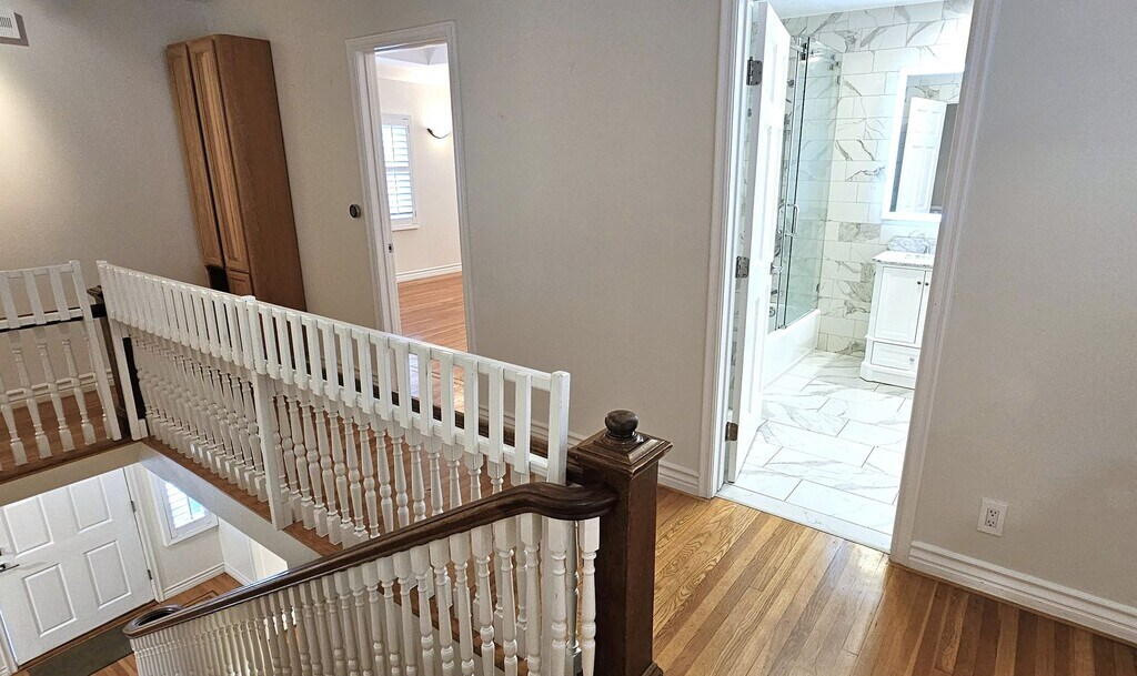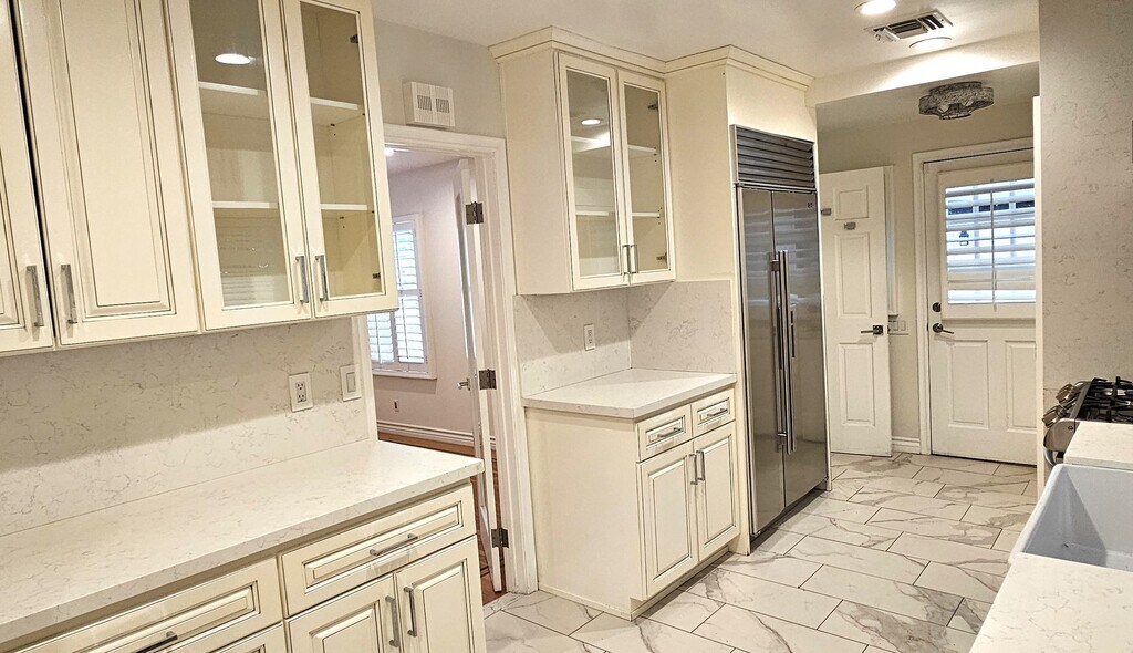 Gorgeous, beautifully remodeled two-story, 3 bedrooms and 2 bathrooms Colonial style home in fantastic prime Valley Village area, with 1,962 sq. ft. of living space and professionally designed, detached soundproof studio converted from the 3-car garage. The home offers 3 bedrooms and 2 bathrooms, combining classic architecture with modern amenities. Magnificent chef's kitchen is fully equipped with top-of-the-line stainless steel appliances (including a Sub-Zero refrigerator and double ovens), quartz countertops, custom cabinets and breakfast nook area. Huge living room and formal dining room. All three bedrooms are located on the second floor. Central AC/heat, hardwood floors throughout, recessed lighting, skylights that bring natural light into the upstairs bedrooms, large closets. All windows have been upgraded to energy-efficient double-pane glass with elegant wooden shutters. The home is pre-wired for sound and media. Large gated private backyard with storage unit and another beautiful private yard on the East side of the house. The 3-car garage has been converted into a high-performance creative hub ideal for composers, producers, podcasters, editors, and performers. Featuring a 5.1 surround sound setup, separate live and control rooms wired with premium Mogami cabling, and a private entrance with its own bathroom and lofted storage this is a rare turnkey opportunity for content creation, post-production, or immersive home theater. Originally built by and for a working film/TV composer, this space is dialed in for composing, mixing, mastering or anything your imagination requires. Located in the heart of Valley Village, just minutes from entertainment and shopping, with easy access to the Metro line, freeways, schools & many worships. One year minimum lease. One month security deposit. Background check will be completed with application. Owner will consider pets with additional deposit. RPM South SFV We follow all fair housing laws. DRE #01952623