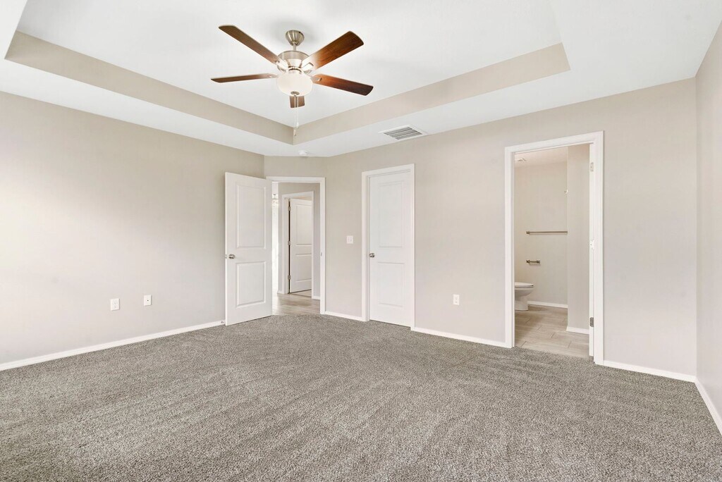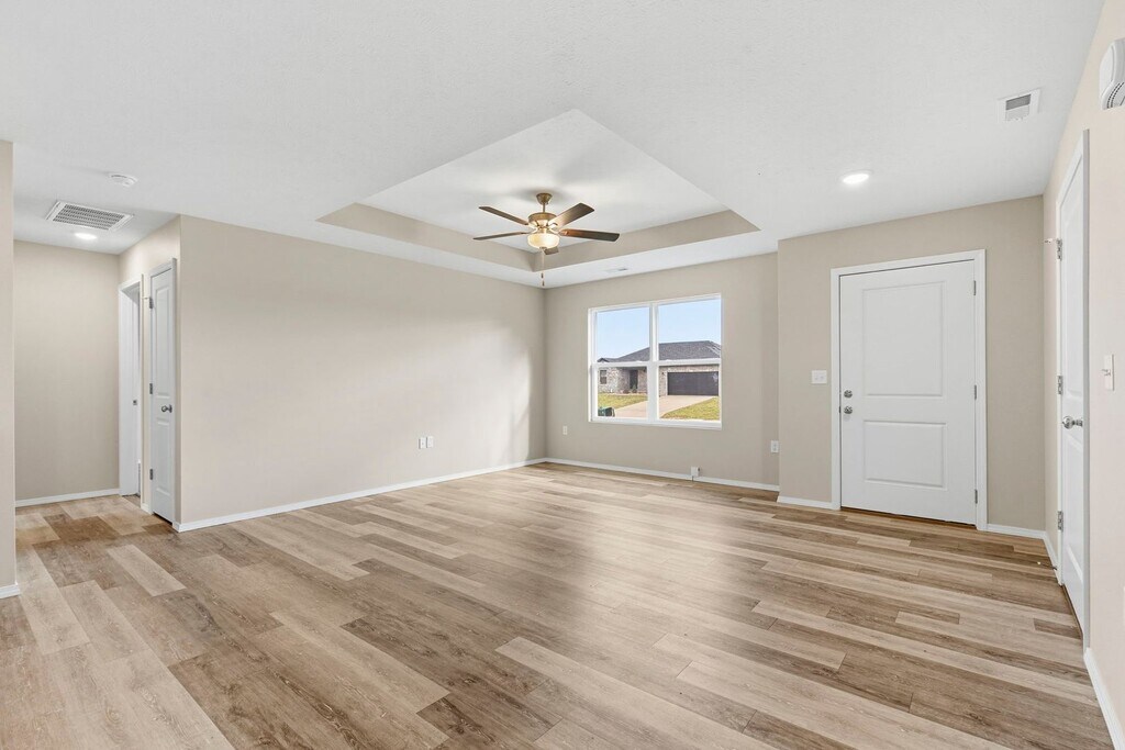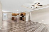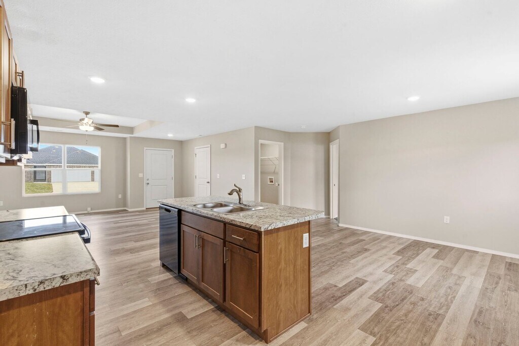 Enter from the front porch or the 2-car garage and be immediately welcomed into the living room with an open view through to the dining and kitchen areas for family meals and meaningful evenings together. Natural sunlight from the sliding glass doors, leading to the back patio, makes the kitchen's large island the perfect spot for preparing delicious family recipes while grabbing your recent grocery trip items from your walk-in pantry. Retreat to your thoughtfully designed master bedroom, featuring an en suite bathroom and walk-in closet. Two additional bedrooms provide room to grow, work and play with their own spacious closets.