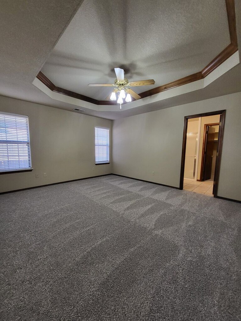 Spacious home with covered patio! Large open floor plan. Half bath and utility room off spacious kitchen. Formal dining area or office + breakfast nook. Large primary bath with double sinks, walk-in shower, adn walk-thru double closest. Bonus room upstairs for extra living or storage (not fully temperature controlled). Vacuum system not maintained. Water softener system to be maintained by tenant. New carpet and freshly painted! Pet negotiable with approved application and additional $300/pet refundable deposit. Back yard not completely fenced. Proof of vaccinations on all animals due upon application. If you have not already please visit our main website for further details, all available properties and the application process. We do ask that you drive by locations of interest to ensure the area will work for you prior to scheduling viewings. Please feel free to contact us at any time with questions and to schedule a showing! Bare Property Management, Inc (BPM).
