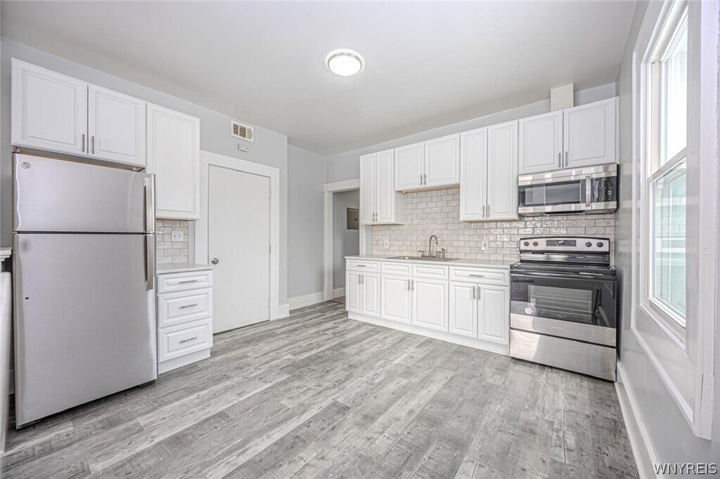 Beautifully updated 3-bedroom rental unit featuring a bright,open layout with modern finishes throughout. Unit has a new kitchen with white cabinetry,stainless steel appliances,and updated countertops,along with a fully renovated bathroom with contemporary tile. Fresh paint,new flooring,and plush carpeting throughout. Spacious bedrooms with ample natural light. Well-maintained building in a convenient location close to shopping,dining,and public transportation. Move-in ready.