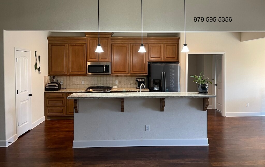 Beautiful home- Popular 1 Story 4 Bedrooms with four walk-in closets, 3 Full Bathrooms, covered patio -Kitchen open to Family room and dinning room w/ large bar top granite, gas range stove, pantry w/tons of cabinet space-Owner providing Fridge-Master suite, faux wood blinds, oversized standing shower, double vanity-Garage door opener, gutter, sprinkler system-Attached double car garage-Great neighborhood next to Southern Oaks Park with great amenities and access to great schools, shopping and work commute. Minutes from grocery stores HEB, Kroger, Walmart and COSTCO retailer and Sport Centers and medical centers and hospitals. 1year or 6 month lease. Agent commission is honored.