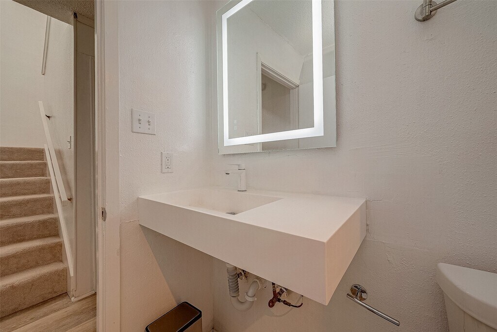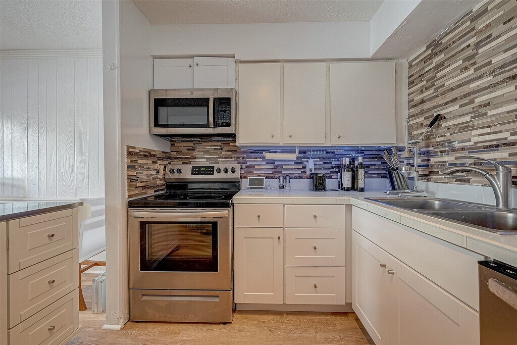 Re-imagined home boasts luxe updates such as glass tile countertops,stainless steel appliances,European tilt & turn argon-filled double pane windows and vinyl plank flooring. Bathrooms are breathtaking,exuding elegance and the primary features a floating European commode. Recent updates include flooring,windows,kitchen cabinets,light fixtures,AC system,roof,fence,and side-paneling among others. Community also boasts clubhouse with amenities and a pool! Sought after schools are walking distance! If you have discerning taste; look no further; it's time to see 12042 Mighty Oak #B in person!! MLS# 15374095