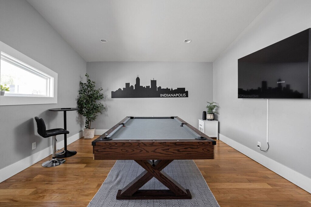 The advertised rate of $6,296/month is the lowest available price, based on a 30 day(s) stay with a move-in date of August 23, 2026. Rates vary depending on the duration of stay, season, and other parameters. For exact pricing and additional pricing components, please visit our website and enter your desired move-in and move-out dates. The rate is applicable when billed upfront; it can be higher if billed in multiple payments. Welcome to this gorgeous 4-bedroom, 3.5-bath home in Indianapolis, offering 2688 sq ft of living space. Feel at home in this immaculate space, just minutes from all the excitement Indianapolis has to offer. This bright and open home is equipped with a gourmet kitchen, HDTVs, and an outdoor patio. For entertainment, enjoy the pool table, foosball table, and complimentary Wi-Fi. The kitchen is fully loaded with top-of-the-line appliances, including a refrigerator, stove, coffee maker, teapot, toaster, cutting boards, knives, pots, pans, plates, cups, and utensils. Fresh towels, soaps, and shampoos are provided in the bathrooms for your convenience. A washer and dryer are also available for your use. Each additional guest beyond 8 is subject to a $63 per person per night fee to account for added amenities, cleaning, and maintenance costs. Centrally located in a peaceful area near downtown, this home is just minutes away from popular dining spots, entertainment, and cultural attractions. It's situated 1.9 miles from Mass Ave and 1.8 miles from Lucas Oil Stadium. Nearby attractions include Square Cat Vinyl (0.5 mile), Circle Centre Mall (2.4 miles), White River State Park (2.7 miles), and the Indianapolis City Market (1.9 miles). Guests can park on the street out front, where there's usually ample parking. [SI]