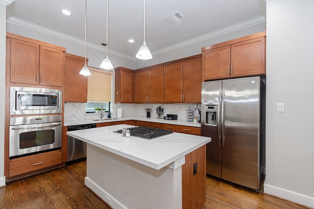 Luxury meets location in this beautifully updated 3-story townhome located on a quiet street in the heart of the Washington Corridor. Just minutes from Downtown,the Galleria,and Memorial Park,this home offers easy access to premier shopping,dining,and outdoor activities. Renovated just three years ago,it features new oak wood floors,high ceilings,a cozy fireplace,and a bright,open floor plan ideal for entertaining. The gourmet kitchen boasts a gas cooktop island,granite and marble countertops,and a designer backsplash. Spacious bedrooms offer hardwood floors,large walk-in closets,and updated bathrooms with a spa-like feel. Includes refrigerator,washer,and dryer. Three balconies and and rare outdoor space makes this perfect for entertaing. No HOA fees. Currently a popular and profitable Airbnb—perfect for homeowners or investors seeking a turnkey opportunity in one of Houston’s most desirable neighborhoods. MLS# 25443737