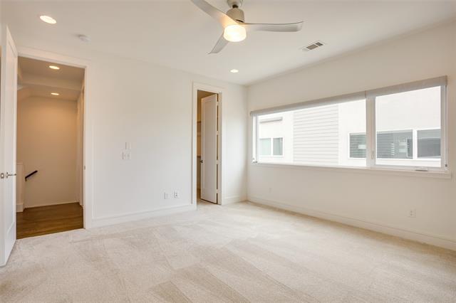 Modern townhome just minutes from downtown Dallas in the Cedars. Unobstructed views of the skyline from the rooftop patio are amazing & perfect for entertaining. BBQ pit included! 3 BR-2.5 BA in a gated complex with 2 car garage. Living, dining & kitchen floor is open & has windows all around that let in the natural light. Stained wood flooring & clean modern finishes adorn the entire home. Kitchen has gas cooking & built in appliances. Fridge, washer & dryer INCLUDED. DART Station is a tenth of a mile away. Bedroom details: 1 bedroom (or home office) on 1st floor, Main Bedroom & 3rd bedroom on 3rd floor with two bathrooms. Home has smart switch capabilities & smart door locks. Security alarm available at tenant expense. Pets allowed on case by case basis. Approval can take up to a week. Online Application Only-need last 2 paychecks (or bank stmt if self employed), ID, Photo of Pet, full application, background check, credit check. $85 per person over 18. *Some rooms virtually staged*